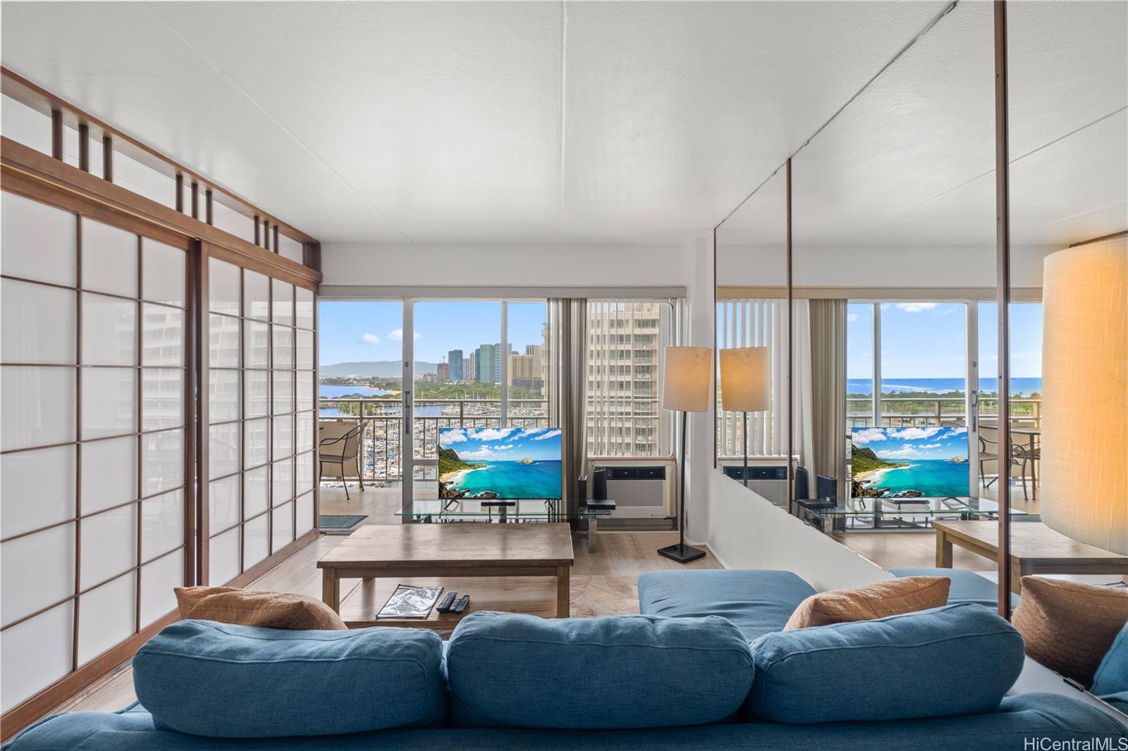 Fantastic ocean view at iconic building Ilikai . This unit has no restriction of union.