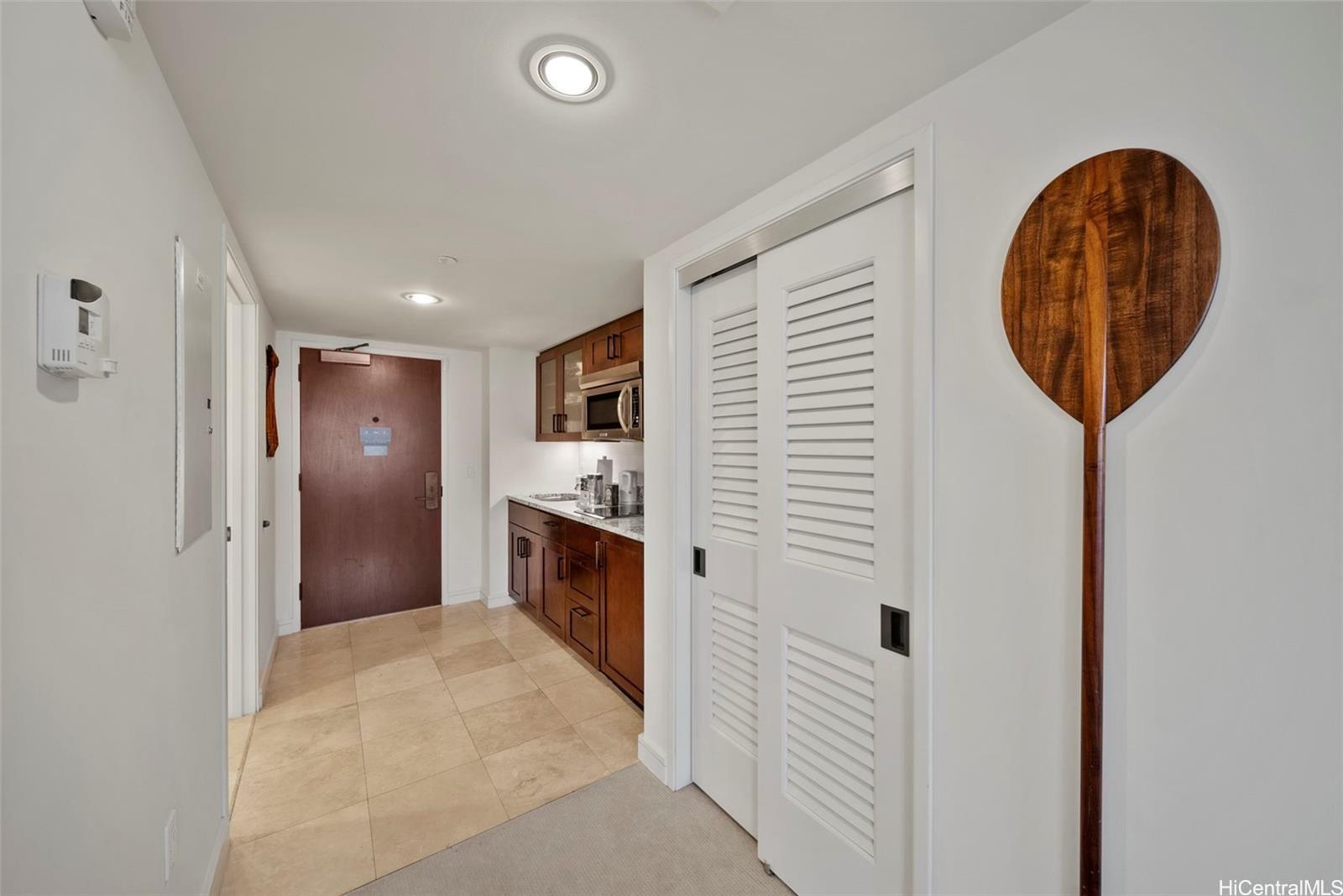 Enjoy the benefits of a Forbes Five Star luxury hotel in a fully furnished studio just minutes from Waikiki Beach. The former Trump Tower Waikiki has been rebranded as the Ka La'i Waikiki Beach, a Hilton LXR global luxury brand. Luxurious guest amenities include an exquisite infinity pool, luxury spa, fitness room, restaurants on property, valet service and an attentive concierge staff. This condominium hotel unit has a larger than average luxury bathroom with double vanities, and a separate soaking tub and shower. Great as a vacation home and currently not in the hotel pool which means a big savings on expenses. Consider it for a long term rental or second home. Parking stall is an option for an extra monthly fee. Your luxury lifestyle awaits.