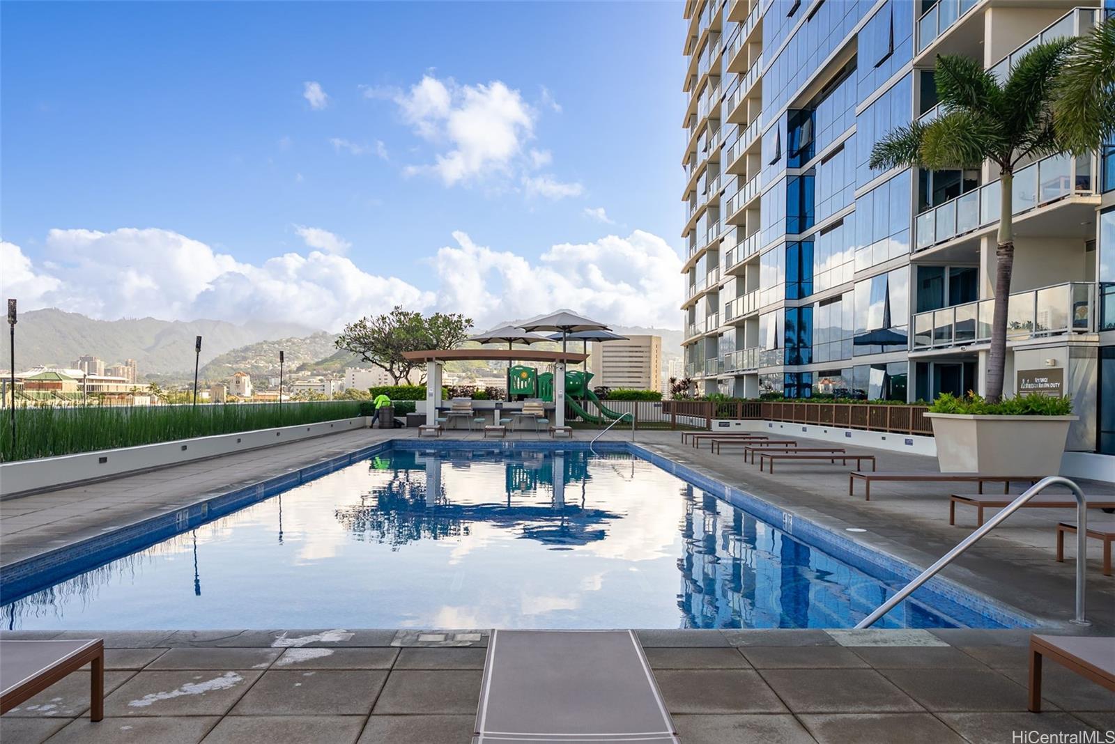 カカアコの中心部に位置するKeauhou Placeの、めったに売りに出ない角部屋3ベッドルーム。床から天井までの窓からは、3方向からの眺望と、ほぼ270度の街と海のパノラマビューをお楽しみいただけます。室内面積は1,346平方フィートと広々としており、バルコニーも付いています。オープンコンセプトのリビング、キッチンアイランド、スプリットエアコン、専用バスルーム付きの主寝室など、モダンなライフスタイルに合わせて設計されています。アメニティには、温水プール、ジャグジー、バーベキューエリア、エクササイズルーム、プレイグラウンド、ミーティングルームなどがあります。ペット可で、年間を通して無料の子供向けアクティビティが多数用意されています。キーフォブによる入退室管理と、常駐の管理スタッフと警備員によるセキュリティで安心です。階下にはDown to Earth、H-Mart、レストラン、その他のショップがあります。Salt Kakaakoや30以上のショップやレストランまで徒歩圏内。通りの向かいには、将来開業予定のCivil Center Rail Stopがあり、カカアコのあらゆる魅力を満喫できます。