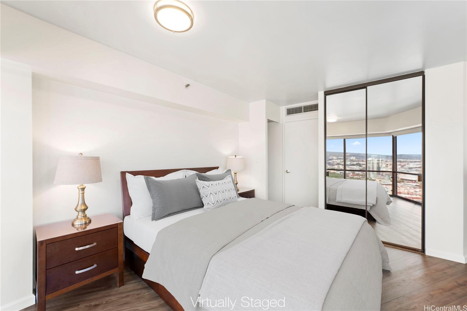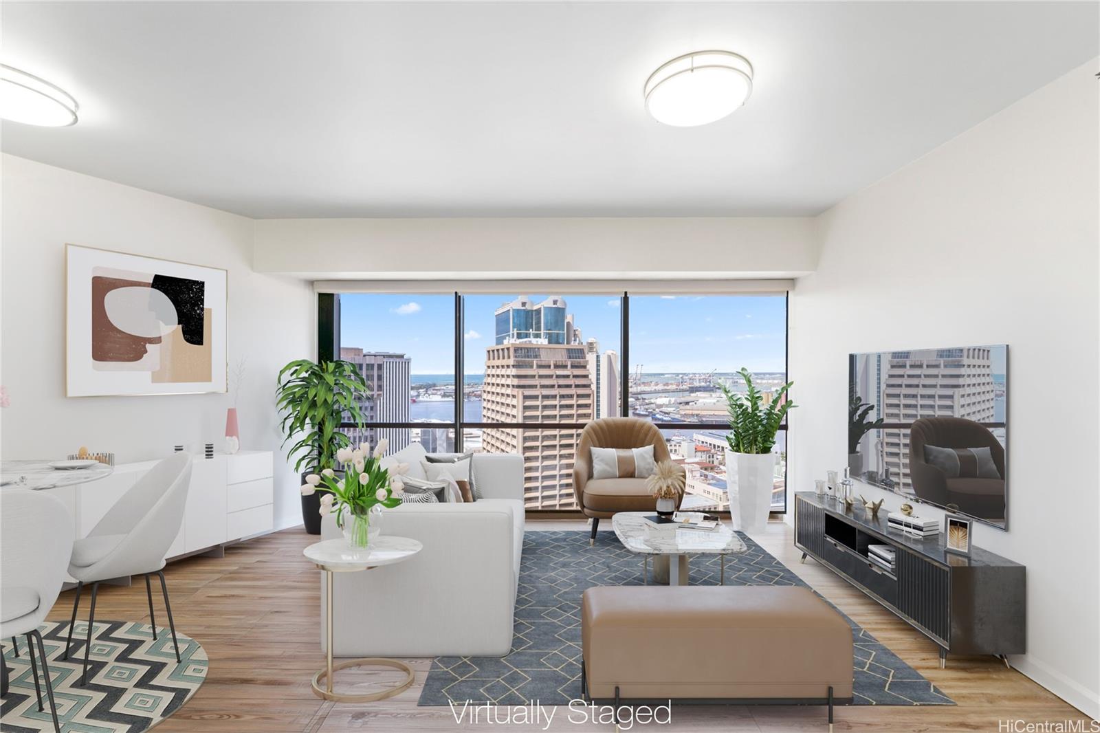 Enjoy sweeping high-floor ocean and city views from this tastefully renovated residence at Executive Centre. This desirable unit includes one reserved parking stall, an in-unit washer and dryer, and a full AC system replacement completed just 2 years ago. Renovated in 2019, the property offers exceptional flexibility with BMX mixed-use zoning, allowing for residential, business, or legally permitted short-term rental use. Located in the heart of Honolulu’s Central Business District, Executive Centre sits directly on the bus line with easy freeway access. For owners interested in income potential, Aqua-Aston operates a hotel program with a front desk conveniently located in the building. Residents also enjoy 24-hour security and an on-site restaurant. Ideally situated near Tamarind Park, Chinatown, Hawaii Theatre, Aloha Tower, the courthouses, Hawaii State Capitol, Iolani Palace, the Federal Building, and a wide array of restaurants, shopping, banks, and everyday conveniences, this is urban Honolulu living at its best.