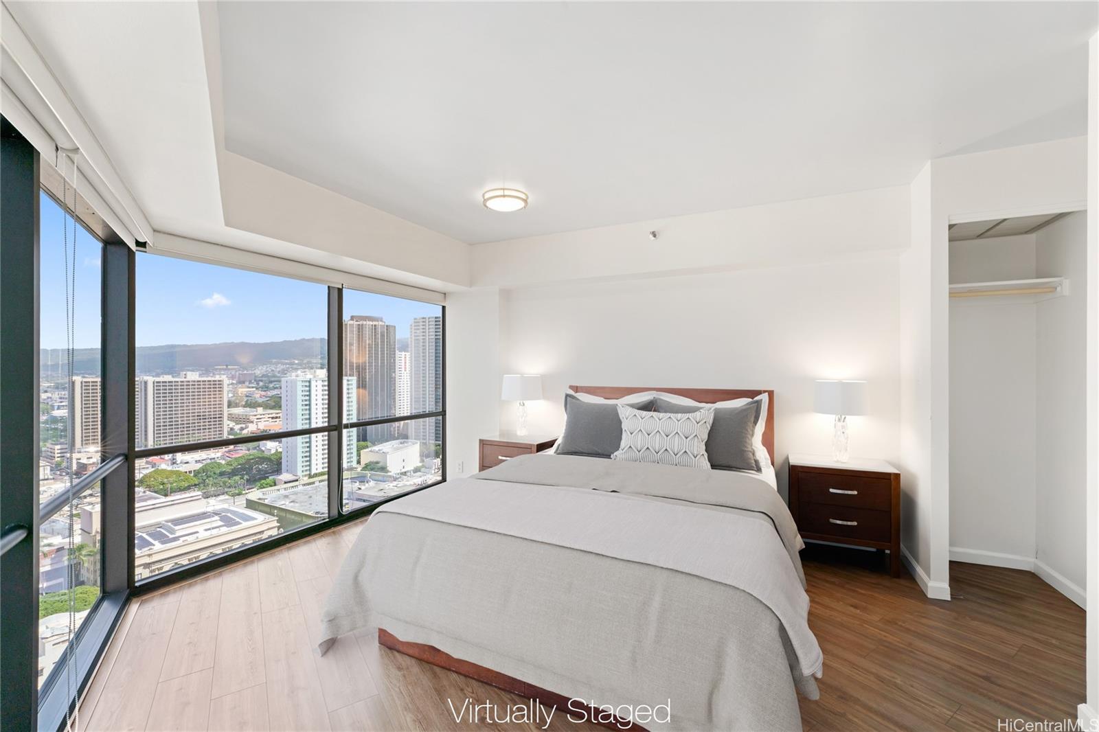 エグゼクティブセンターのこの上階にあるセンス良く改装されたレジデンスからは、海と街の壮大な眺望をお楽しみいただけます。この魅力的なユニットには、専用駐車場1台分、室内洗濯乾燥機、そしてわずか2年前に完了したエアコンシステムの全面交換が含まれています。2019年に改装されたこの物件は、BMX複合用途地域指定により、住居、ビジネス、または合法的に許可された短期賃貸など、非常に柔軟な利用が可能です。ホノルルの中心業務地区の中心部に位置するエグゼクティブセンターは、バス路線に直結しており、高速道路へのアクセスも容易です。収益の可能性に関心のあるオーナー様向けに、アクア・アストンは建物内に便利なフロントデスクを備えたホテルプログラムを運営しています。居住者は24時間セキュリティと敷地内のレストランも利用できます。タマリンドパーク、チャイナタウン、ハワイシアター、アロハタワー、裁判所、ハワイ州議会議事堂、イオラニ宮殿、連邦ビル、そして数多くのレストラン、ショッピング、銀行、日常生活に必要な施設に近接する理想的な立地にあるこの物件は、ホノルルの都市生活の最高の形と言えるでしょう。