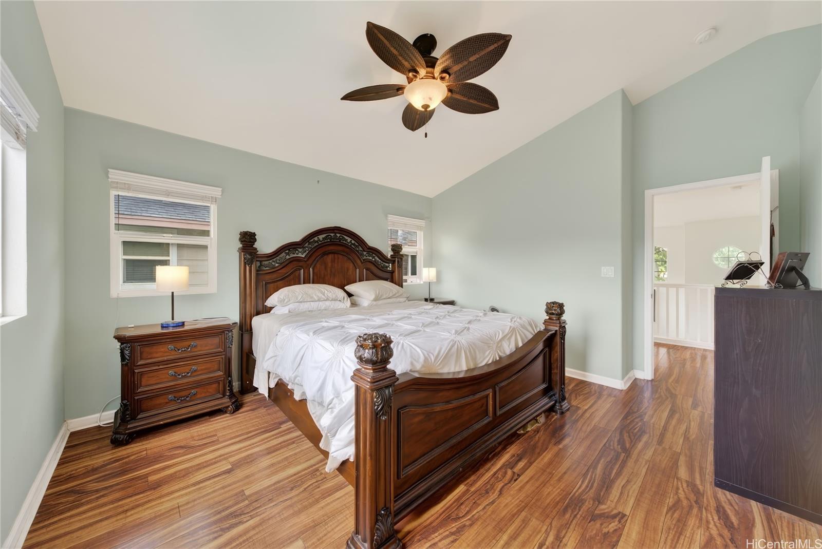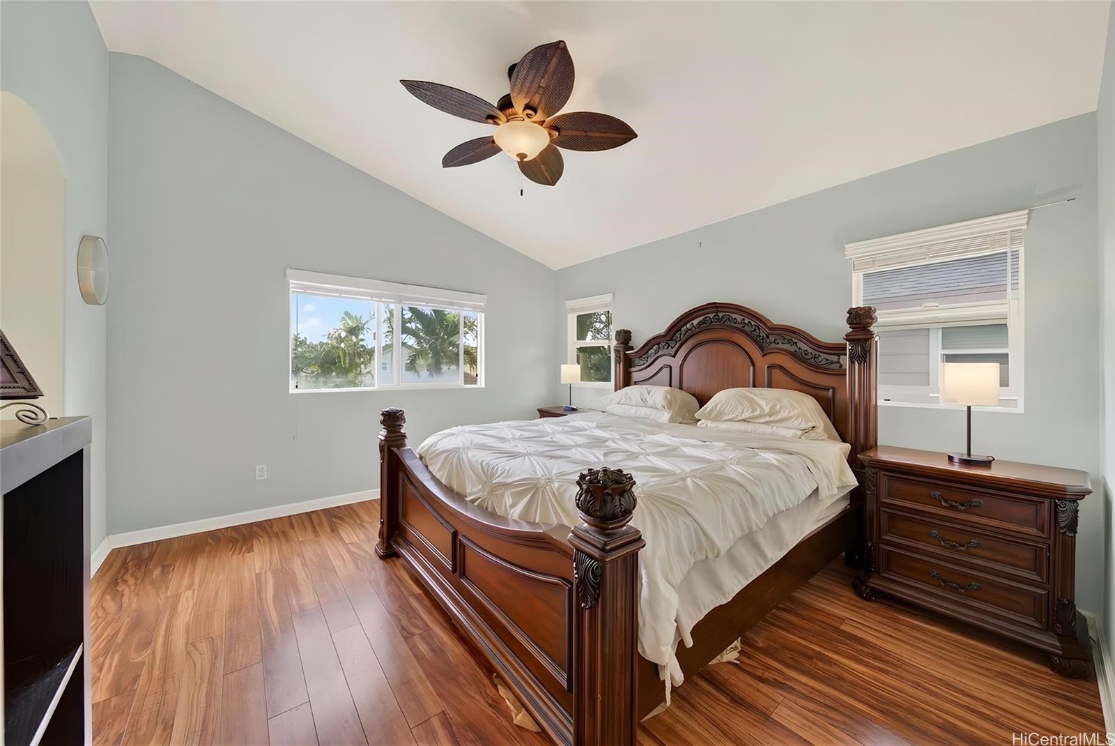 Welcome home to Ke Noho Kai in Ocean Pointe — one of Ewa Beach's most sought-after communities. This well-maintained 3-bed, 2.5-bath home delivers smart, comfortable living with the kind of extras that make a real difference day to day. Inside, vaulted ceilings open up the main living area with natural light throughout. Hardwood and ceramic tile flooring run through the home, leading into a kitchen with modern appliances and solid counter space. The layout flows naturally — easy to live in, easy to entertain in. Out back, a fully fenced private courtyard features a gunite pool surrounded by lush tropical landscaping. It's the kind of backyard you actually want to spend time in. Energy costs? Handled. A 31-panel owned PV solar system and central AC keep this home efficient and comfortable year-round. You also get a 2-car garage plus an extended driveway — extra parking that's hard to find in this neighborhood. Location puts you minutes from the Wai Kai waterfront, Ka Makana Ali'i for shopping and dining, and some of West Oahu's best beaches. This is a lot of home for Ocean Pointe. Don't sleep on it.