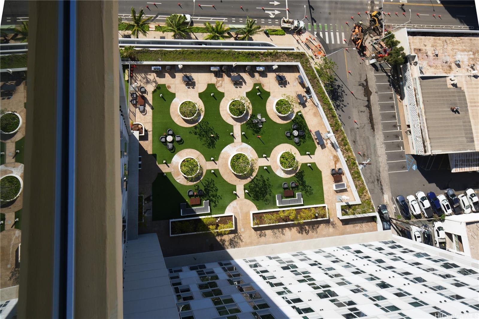 If you’ve been waiting for the right entry point into Kaka'ako, this is it.This desirable corner end unit features a makai-facing orientation, capturing natural light, island breezes & gorgeous views in one of Ward Village’s most dynamic communities. Thoughtfully designed for comfortable urban living in the heart of Kaka'ako. Open concept, granite countertops, & stainless steel appliances. Residents enjoy access to the expansive Sky Lanais—complete with co-working spaces, fitness center, yoga studio, theater, event rooms, BBQ areas, and keiki play spaces—designed for both relaxation and connection. Just moments from Ward Village’s parks, dining, shopping, and the vibrant surrounding lifestyle offerings. Some images have been virtually enhanced.
