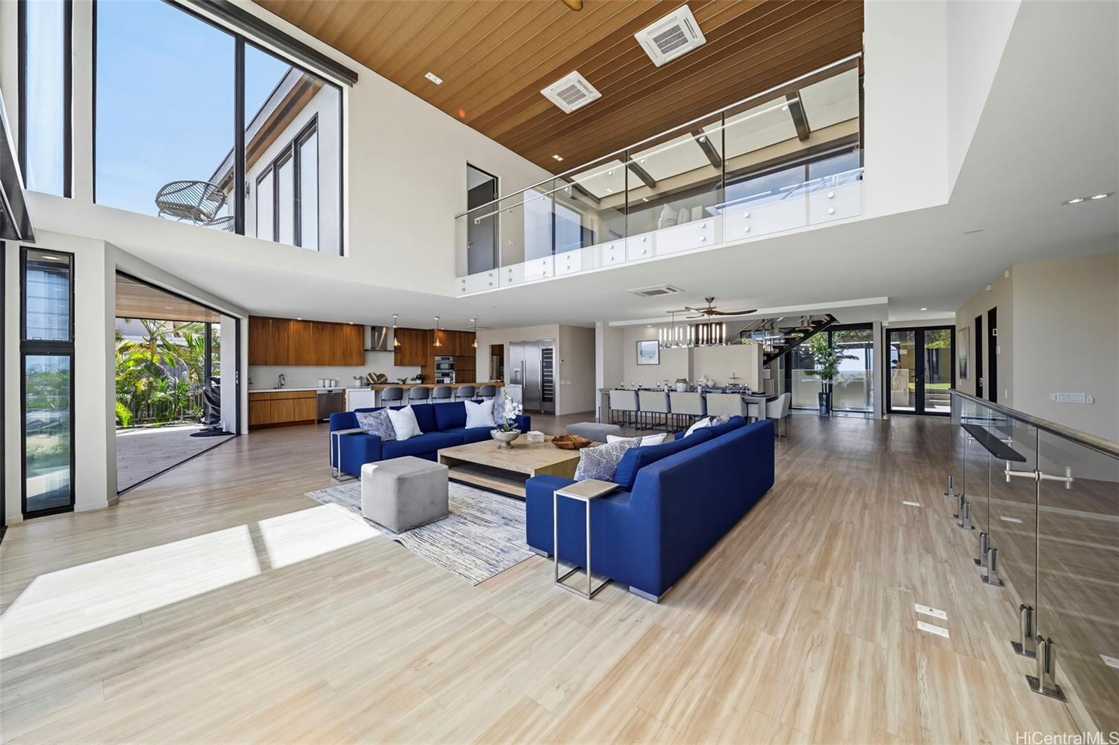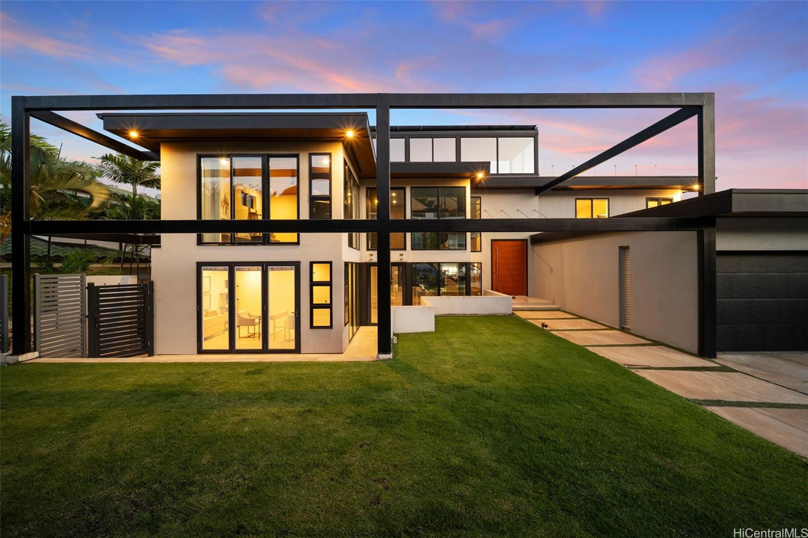 Striking modern architectural residence in the Diamond Head View neighborhood offering panoramic ocean, coastline, Diamond Head, mountain, and sunrise views. Designed with expansive glass, soaring ceilings, and open interiors, this three-level home features 7 bedrooms, 6 full baths, and 2 half baths, with seamless indoor-outdoor living throughout. Built with high-quality materials including designer cabinetry, updated kitchen, and refined bathrooms. The home includes a separate guest suite with private entrance. Resort-style amenities include a large tiled pool with spa, outdoor shower, covered lanais, and a spacious rooftop deck. Owned 27-panel photovoltaic system installed in 2020. Set level access — no steep hills — and a short walk to beaches, coastal trails, and parks. Close proximity to Monsarrat Avenue dining, boutique shops, cultural spots, and Waikiki, with downtown Honolulu and Kahala just minutes away — all while maintaining a quiet, private residential feel.