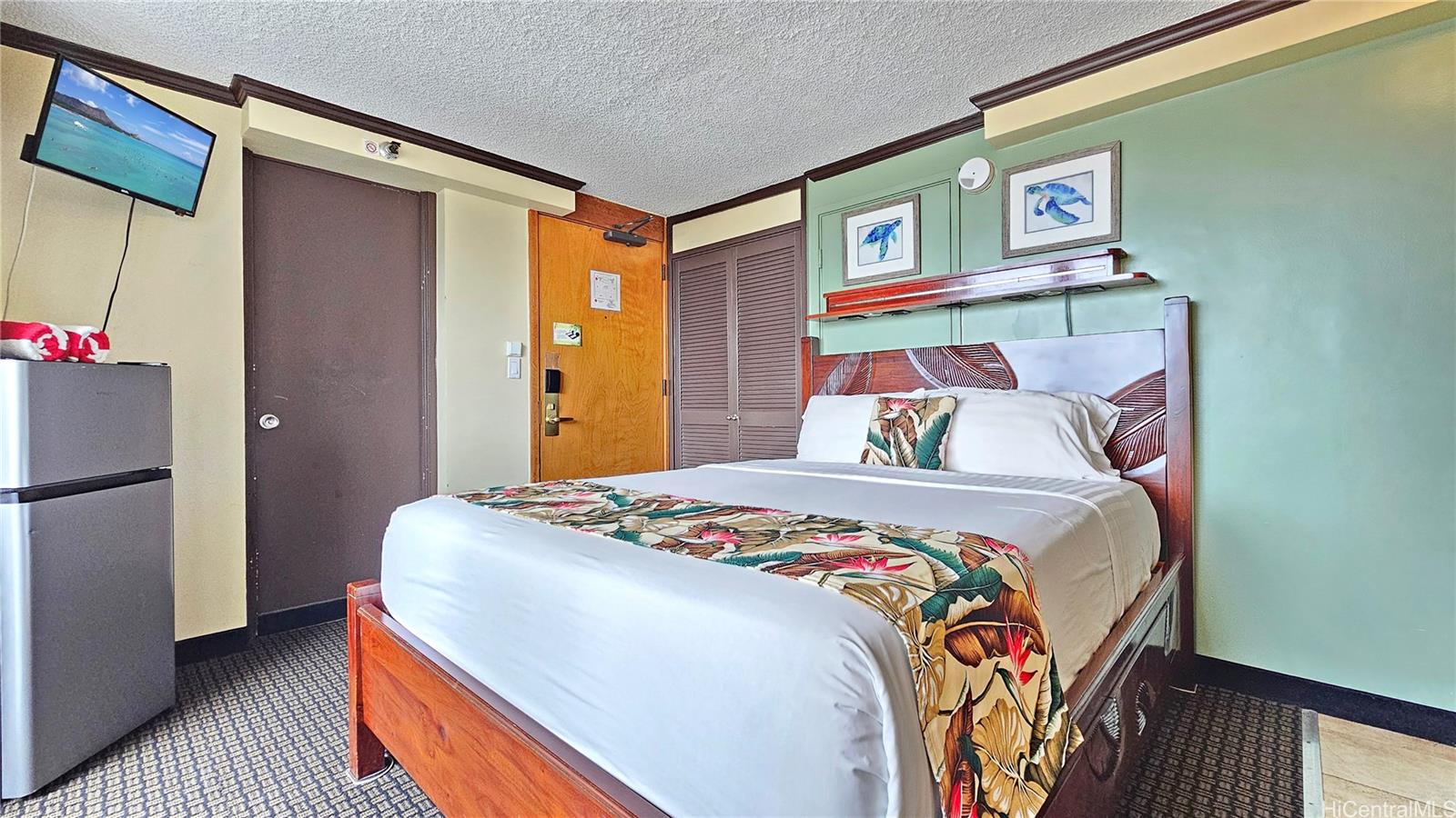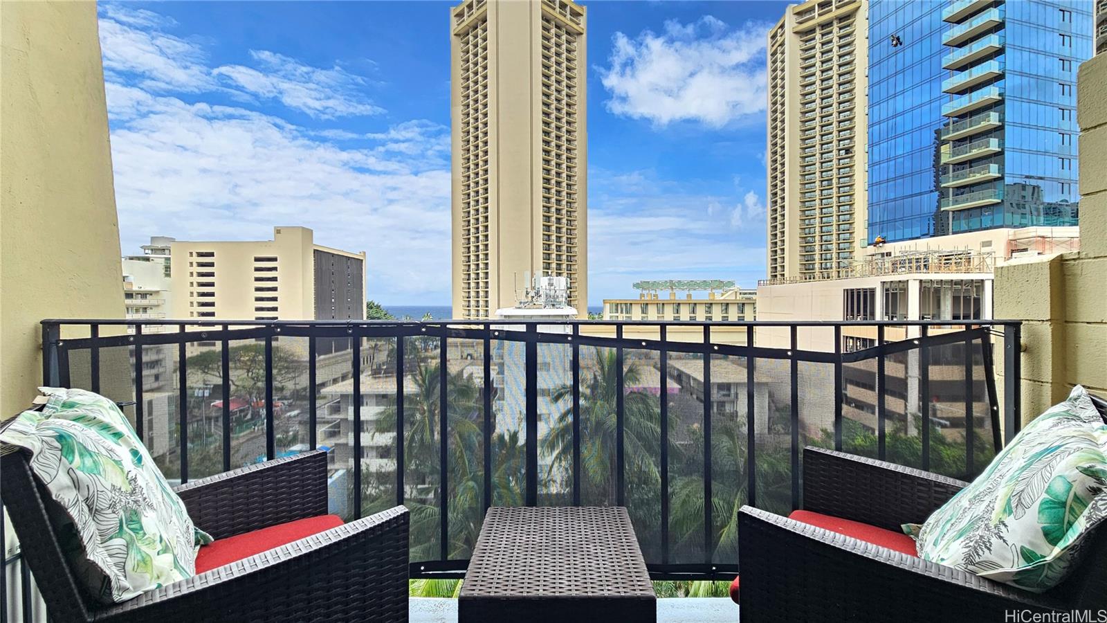 Legal vacation rental at the Bamboo Hotel, 2425 Kuhio Ave #1001, located in the heart of Waikiki just a short walk from Waikiki Beach, dining, and the International Market Place. This updated 10th-floor queen studio overlooks the tropical pool and features three large private lanais, offering mountain, city light, and partial ocean views—rare outdoor space for a Waikiki studio and perfect for enjoying morning coffee, fresh island breezes, or evening city lights.