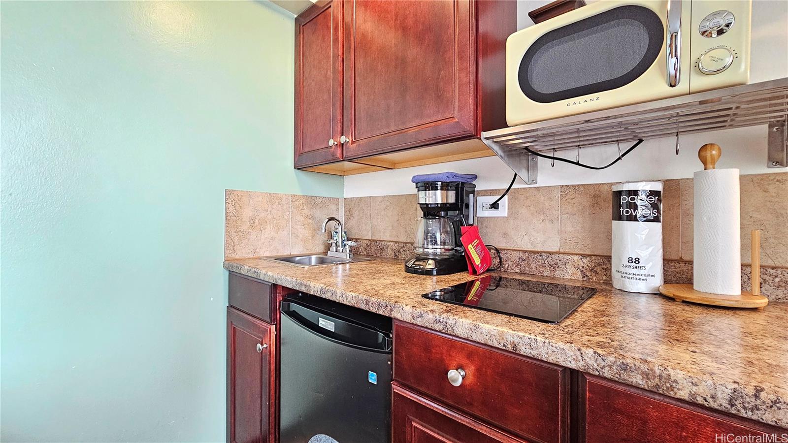 Inside, the suite is designed for comfort and convenience with a quiet split air-conditioning system and large sound-reduction sliding glass doors that bring in natural light while keeping the space peaceful. The kitchenette includes an induction cooktop, microwave, coffeemaker, and compact refrigerator, making it easy to prepare simple meals during your stay.