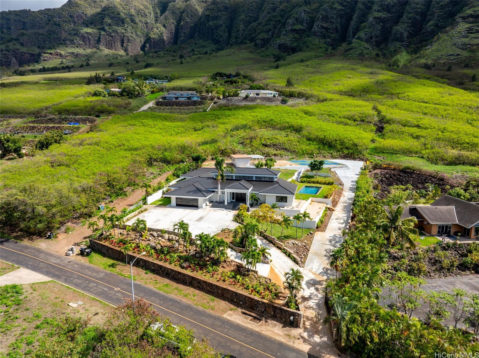 ゲート付きコミュニティ、マウナオル・エステートにある、他に類を見ない価値を誇る物件です。2エーカーを超える広大な敷地に建つこのモダンな邸宅は、海と山の景色、プライバシー、そして屋内と屋外が一体となった快適な暮らしを提供します。高い天井と自然光が差し込む開放的な間取り。シェフ仕様のキッチンには、高級家電メーカー「サーマドール」の製品、特注キャビネット、ウォークインパントリー、そして大きなアイランドカウンターが備わっています。主寝室にはスパのようなバスルームが完備。リゾートスタイルの裏庭には、プール、緑豊かな植栽、屋根付きベランダ、そして2面のピックルボールコートがあります。
