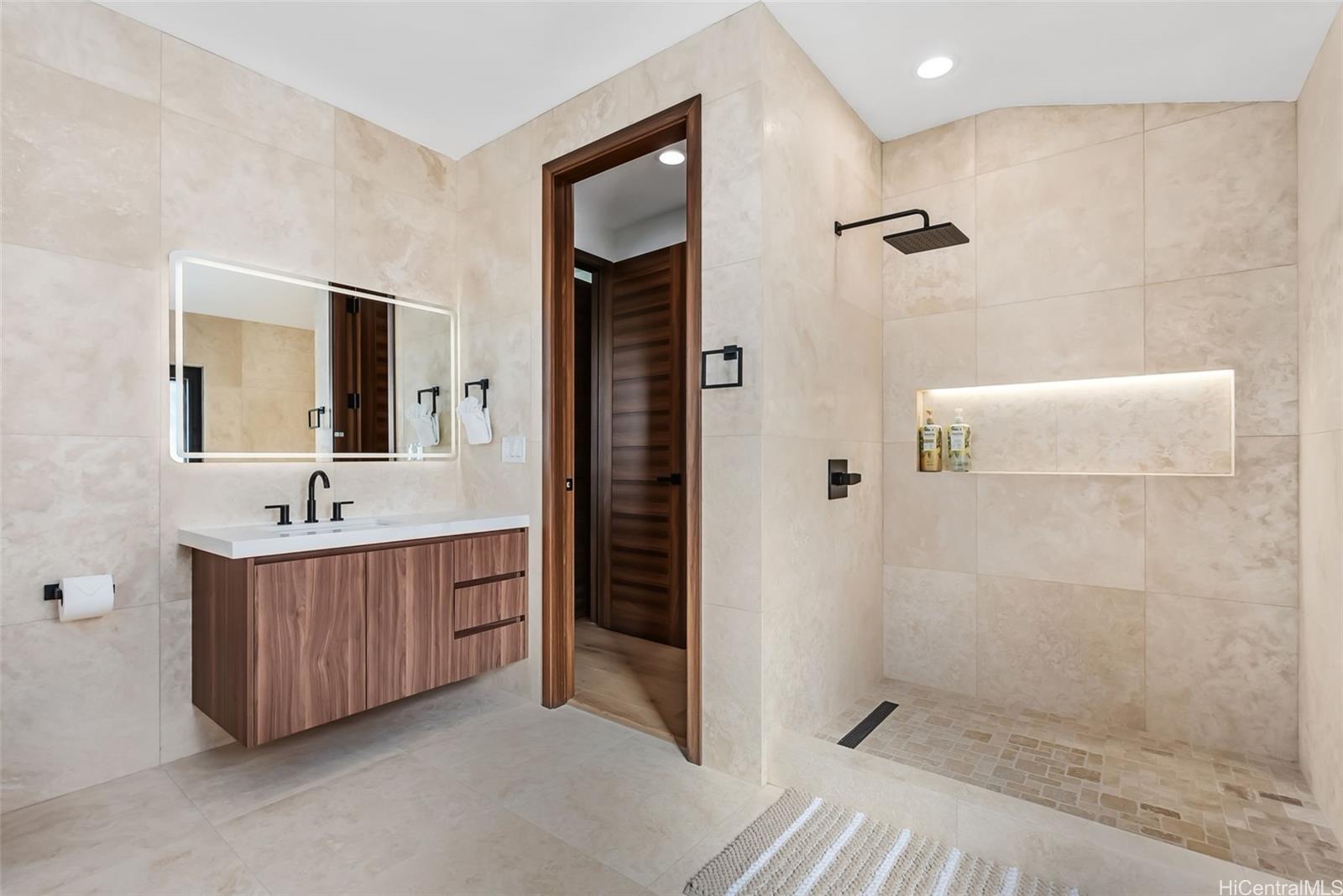 Exceptional value in gated Mauna‘Olu Estates. Set on over 2 acres, this modern retreat offers ocean and mountain views, privacy, and indoor-outdoor living. Open-concept design with high ceilings and natural light. Chef’s kitchen features premium Thermador appliances, custom cabinetry, walk-in pantry, and large island. Primary suite with spa-like bath. Resort-style backyard with pool, lush landscaping, covered lanai, and two pickleball courts.