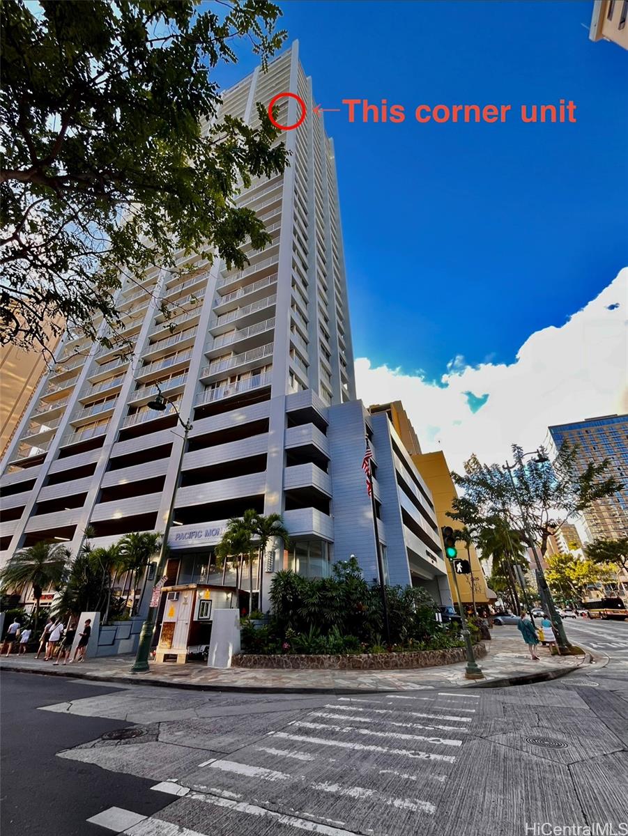 Rarely available high-floor corner unit on the Diamond Head side at Pacific Monarch, located in the heart of Waikiki.