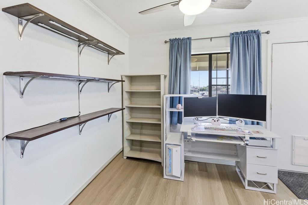 Second-floor corner unit at Pae Ko Gardens with something you rarely find in condo living—a private ground-level yard space, turfed and fenced, ideal for pets or kids. The sellers have already done the work: new LVP flooring, new bathroom vanity, three new AC units, new ceiling fans, and updated lighting throughout. Full appliances and washer/dryer stay. Two assigned parking stalls included. The Villages of Kapolei community offers a pool, playground, clubhouse, and recreation areas. Pets welcome. A well-maintained two-bedroom in West Oahu with outdoor space, recent upgrades, and a move-in-ready footprint that's hard to match at this price point.