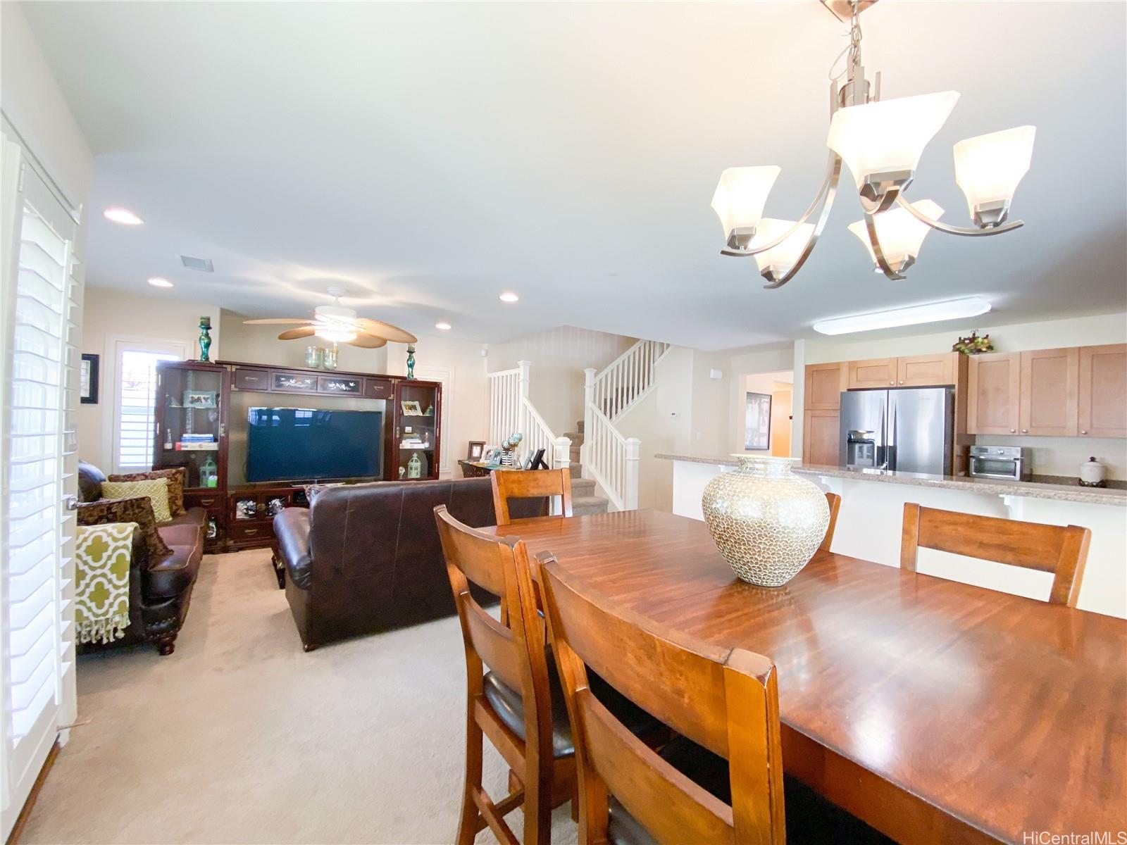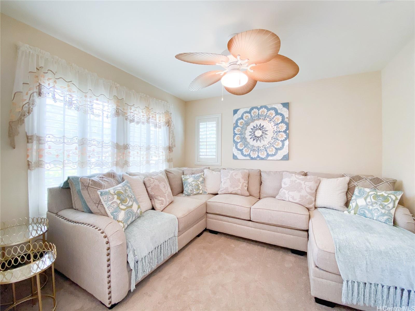 Beautiful 3-BR, 2.5-BA single-family home located in the award-winning Ka Makana at Hoakalei community. This well-maintained property features PV solar panels to help reduce electric bills, central A/C, & solar water heater. The open layout includes tile flooring in the kitchen, stainless steel appliances, & den/office on the ground floor-perfect for a home office or entertainment. Upstairs offers convenient tech area & private balcony off the primary bedroom. Plantation shutters are installed throughout. Enjoy the convenience of a 2-car garage with rafter storage & large, professionally landscaped, fenced backyard with a sprinkler system-ideal for relaxing or entertaining. HOA includes phone/cable/internet package & access to the community's amazing amenities - swimming pool with jacuzzi, tennis/pickleball court, & fitness center. The neighborhood offers walking & jogging paths, parks, playgrounds, & dog park. Conveniently located just minutes from shopping, schools, parks, restaurants, Ka Makana Ali‘i, UH West O‘ahu, golf courses, & beaches. Close to the Wai Kai waterfront recreation & lifestyle destination featuring The LineUp surf wave, lagoon water activities, dining, & more.