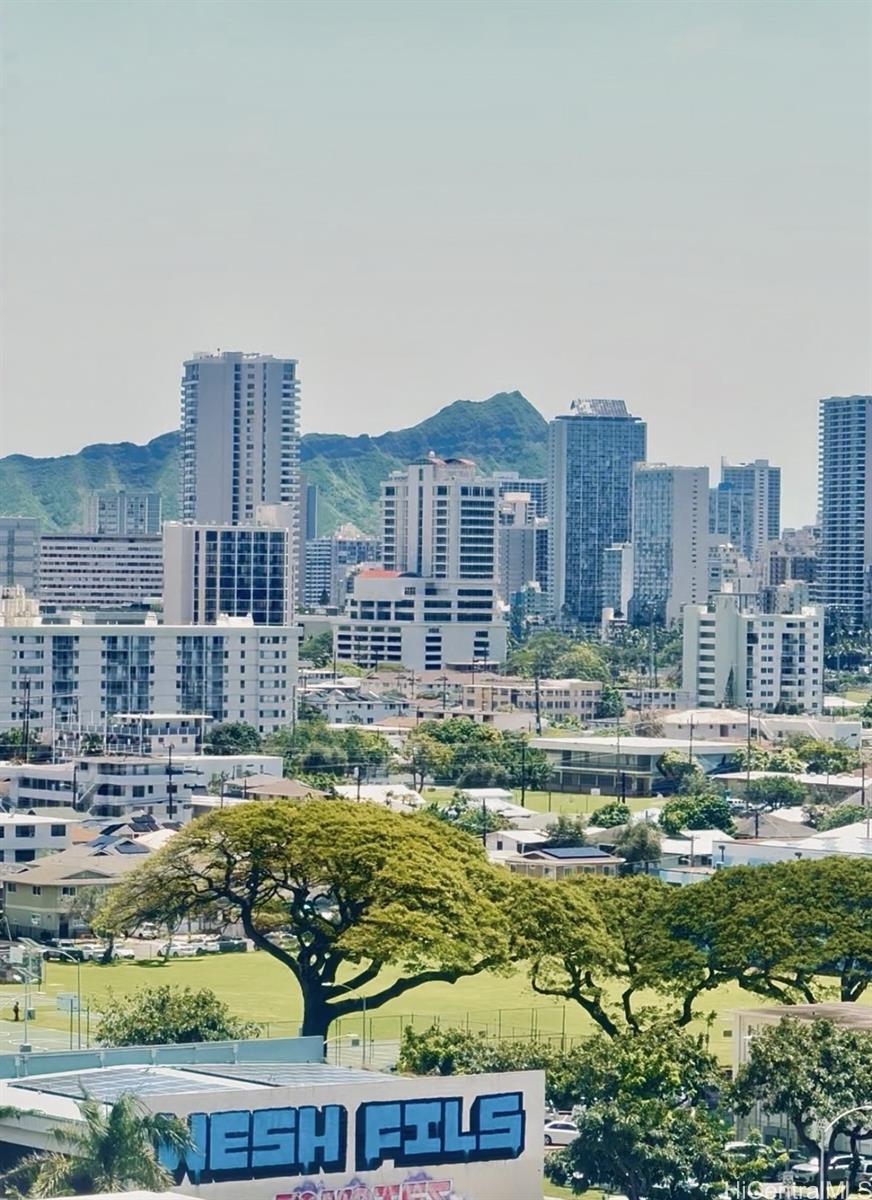 Beautiful market unit with stunning views of Diamond Head & Honolulu city skyline from this clean updated 1-Bedroom 1-Bath condo in Holomua. A Rare find -- ULTRA-LOW-low maintenance fees paired with high-end updates. From the newer A/C units to the granite counters & luxury vinyl plank floors, this unit offers comfort & ease. Excellent 1031 Exchange Value! This unit includes a covered parking stall ideally located on the second floor in a secure garage. Enjoy the benefits of a newer build: no lead-based paint paperwork to worry about and a built-in sprinkler system for ultimate peace of mind. Plus Ample Guest Parking! Recent SOLD units reflect "affordable' apartments that face the senior high-rise. This unit is perfect for first-time buyers, downsizers, or investors! Excellent CONVENIENT TOWN LOCATION close to Punahou School, Maryknoll School, Kapiolani Hospital, Univ. of Hawaii, Ala Moana Center & Beach, Kakaako, Waikiki, Ward Village, Downtown, Chinatown, Don Quixote, restaurants, churches, freeway access, bus-line & more! PRICED To SELL - Hurry! Special *SATURDAY* 4/4/Open House @ 1-3pm!