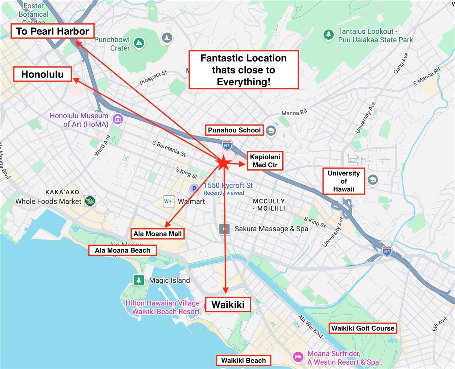 Includes 1 covered parking stall plus guest parking. Secure building with controlled access. Prime location near Kapiolani Medical Center, Punahou, Waikiki, and shopping, dining, and entertainment. There is a Youtube video and 3-D virtual tour available. This is the one you want!