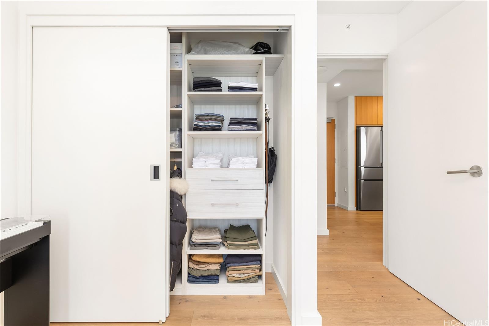 This upgraded residence at Sky Ala Moana West features quality finishes and thoughtful improvements throughout. Quality upgrades include engineered white oak wood flooring, upgraded kitchen and laundry appliance packages, Toto Neorest bidet toilet, California Closet system, and Hunter Douglas roller screen shades. Additional storage provides added convenience. The spacious 99 sf lanai offers ocean views and is perfect for relaxing. Residents enjoy a wide range of resort-style amenities including two pools, a fitness center, spa, BBQ cabanas, dog park, children's play area and multiple private rooms for meetings or celebrations. Conveniently located near Ala Moana Center, dining, shopping and beautiful beaches. The building allows 30-day minimum rental, offering additional flexibility for owners. Furnishings available for purchase separately. *One or more photos have been enhanced.*