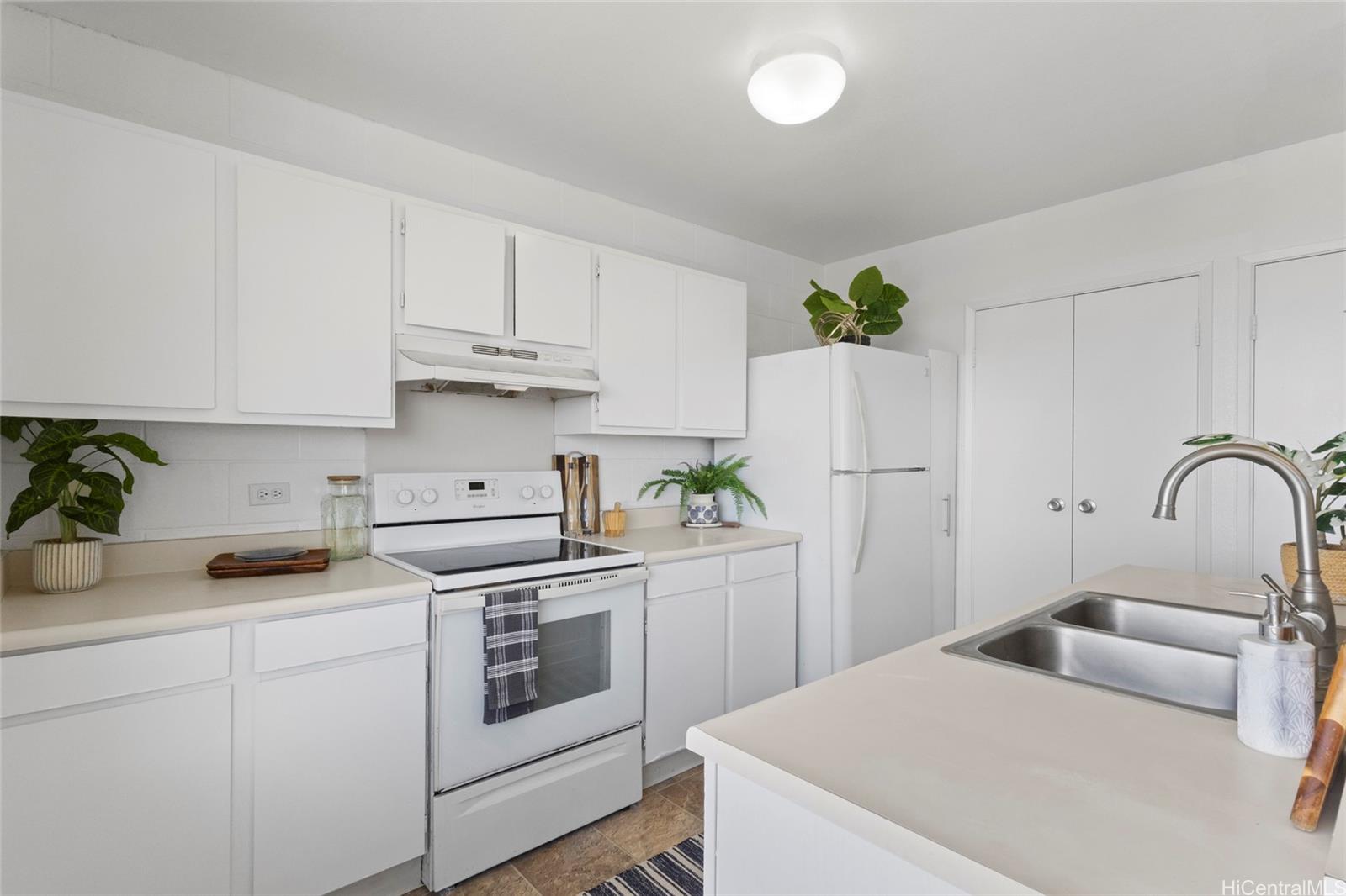 Welcome home to this move-in-ready 2-bedroom, 1-bath townhouse with 2 parking stalls in the breezy Palehua Villas community in Makakilo. This desirable end unit captures refreshing trade winds and offers beautiful Diamond Head and ocean views—creating a comfortable and inviting place to call home. Did I mention it’s pet-friendly too! Recently remodeled in 2025, the interior showcases a clean, modern design ideal for everyday living. Fresh interior paint brightens the space, while luxury vinyl plank flooring flows throughout the main living areas and bedrooms, offering both style + durability. New water heater + enjoy the added convenience of an in-unit washer + dryer. Perfect for first-time buyers or investors, this home also benefits from Makakilo’s cooler hillside climate and peaceful surroundings. Conveniently located just minutes from freeway access, shopping, dining, schools, golf courses + beaches.