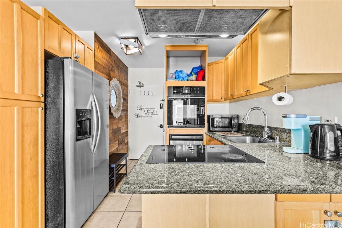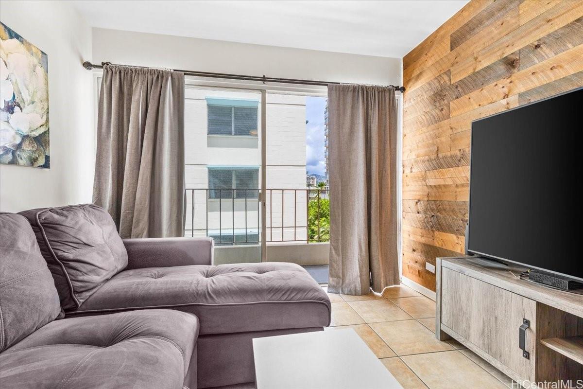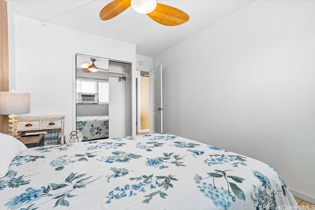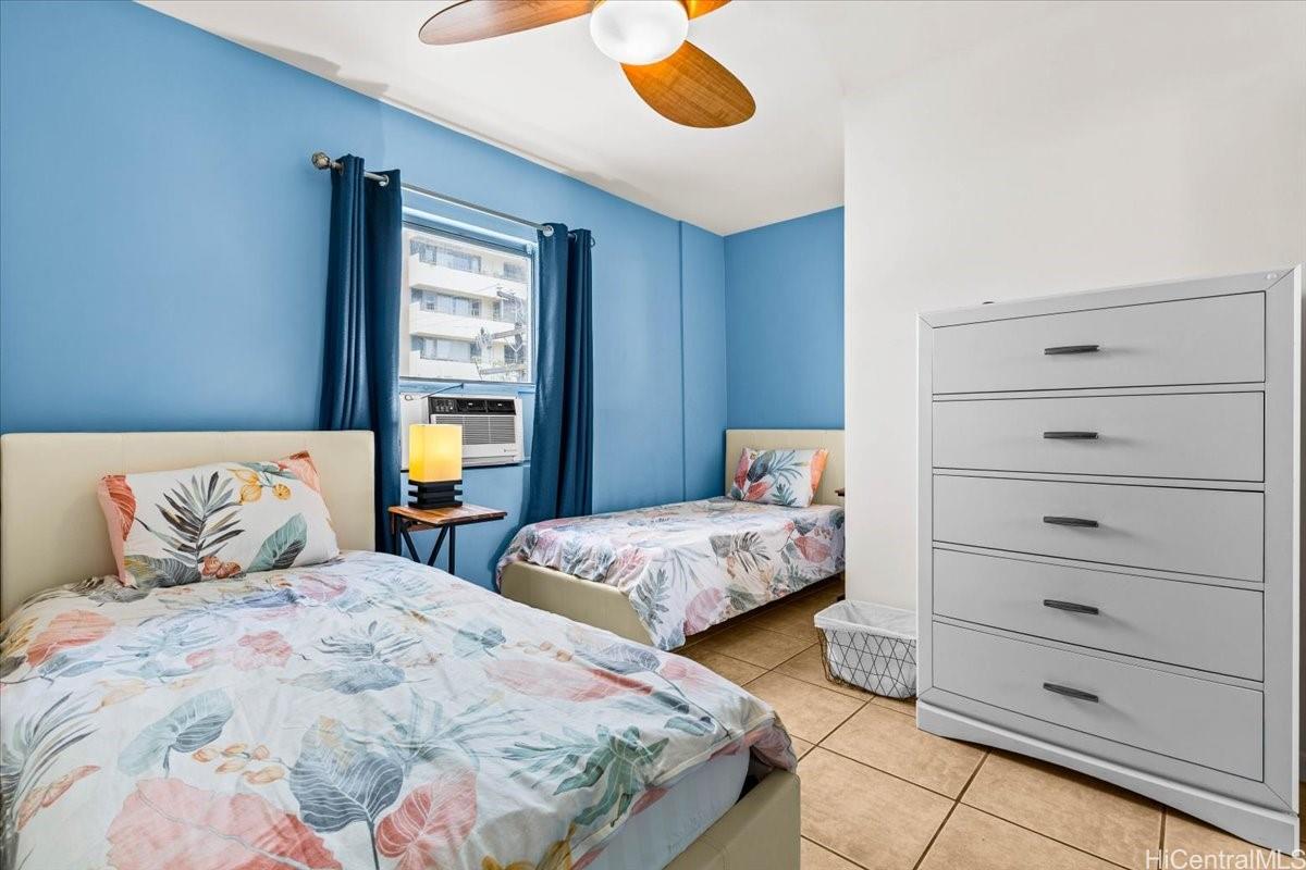 Fee simple two-bedroom unit with one covered parking stall, ideally located in the heart of Waikiki. This fully furnished residence is beautifully decorated and move-in ready. Enjoy the convenience of an on-site resident manager for added peace of mind. Enjoy an unbeatable location just one block from the International Market Place. This spacious, fully remodeled two-bedroom residence features a completely tiled floor, an updated kitchen, three quality ceiling fans, and a private balcony lanai. Well-maintained and move-in ready, the unit includes a refrigerator, oven, cooktop, dishwasher, AC units in both bedrooms, and a newer washer and dryer. Situated in a secure building with fob-controlled access for the main entry, elevator, and stairwell, plus security cameras and an on-site resident manager for added peace of mind. Just a few blocks from world-famous Waikiki Beach- this prime location truly has it all.