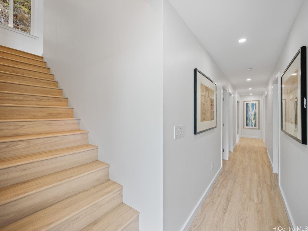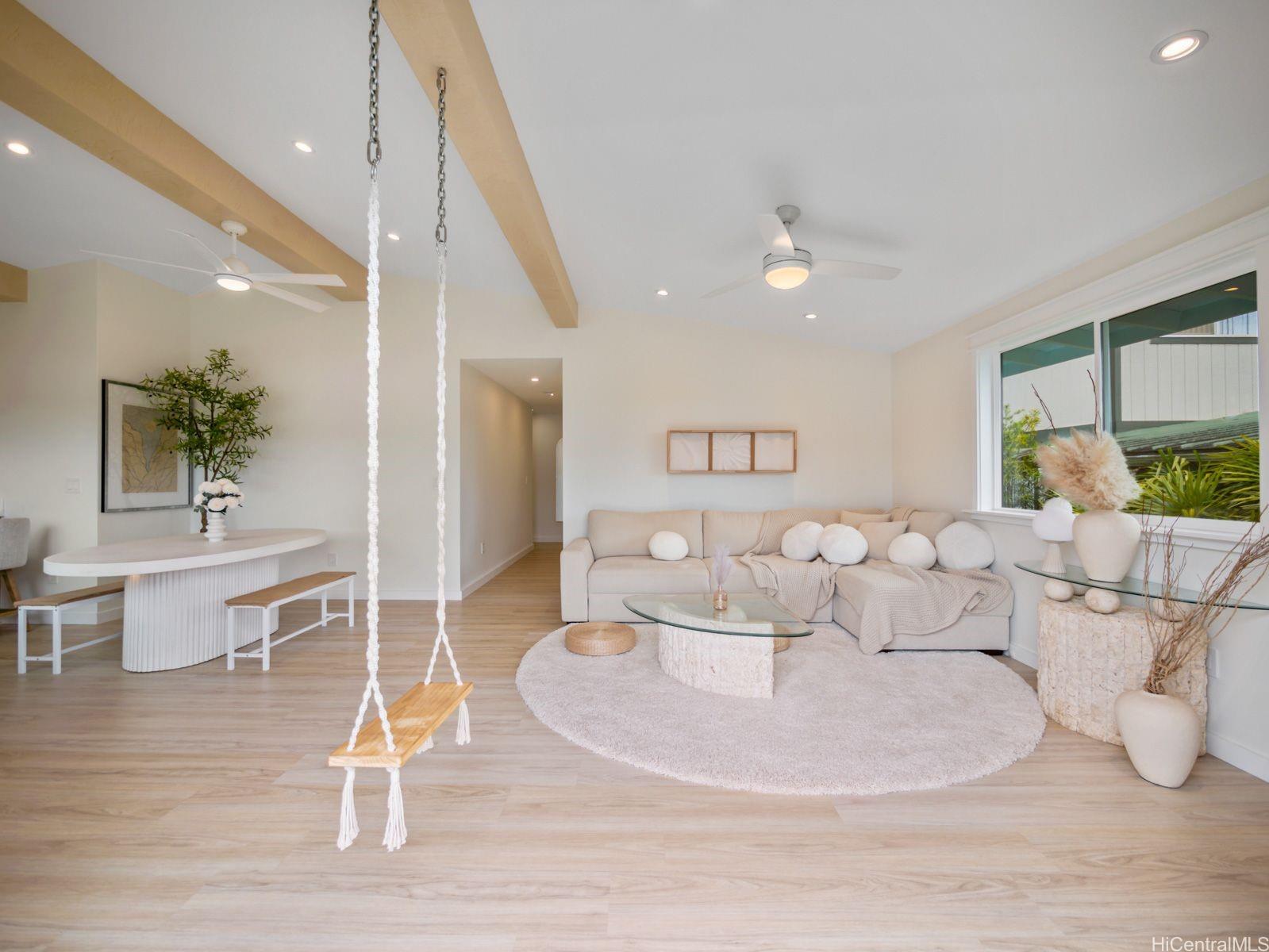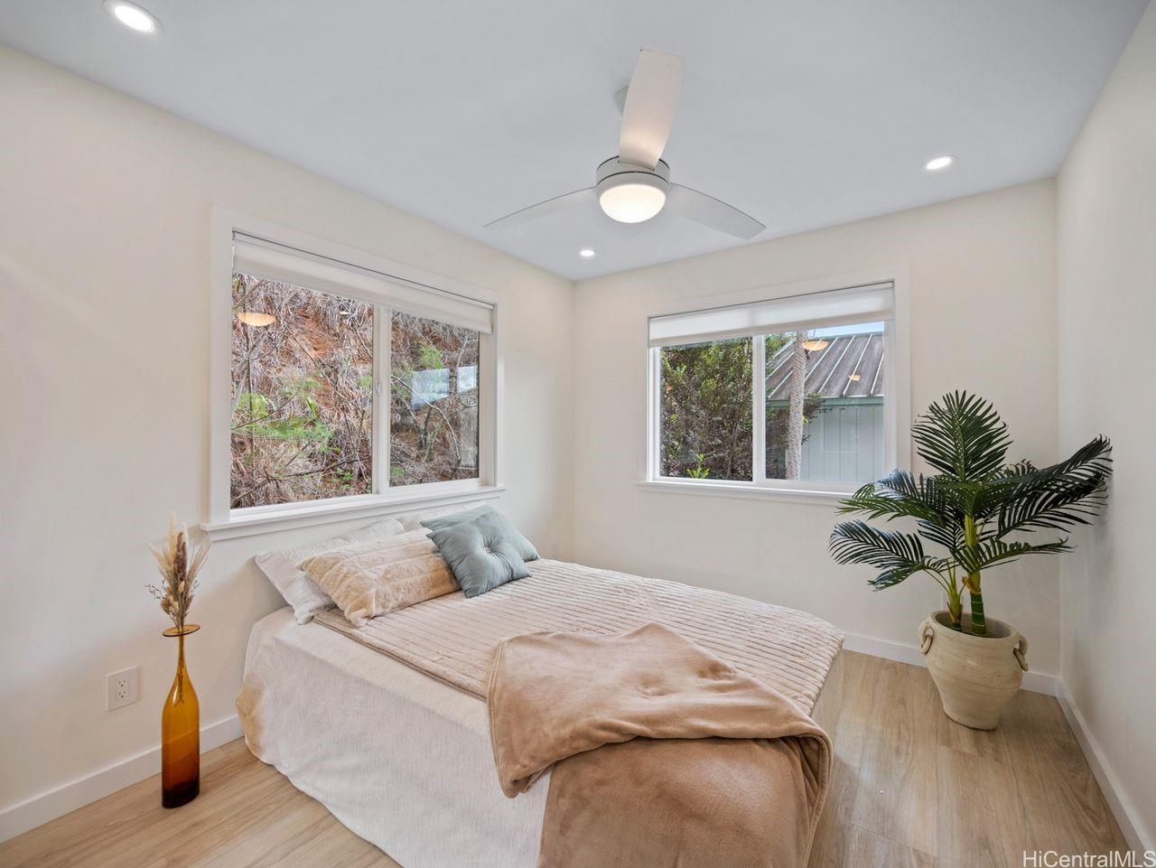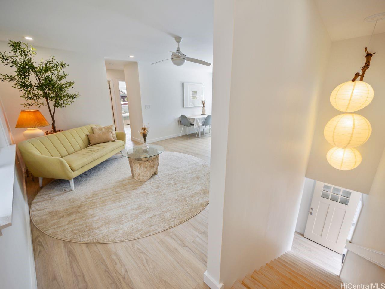 Hale Laule'a has been thoughtfully and meticulously updated to elevate its original structure with luxurious materials that support ethical, energy-efficient, and sustainable living for generations to come. With Japanese and Scandinavian influences, the home focuses on natural materials, minimalist aesthetics, and tasteful craftsmanship, encouraging mindful consumption and lasting quality: reducing waste and promoting eco-friendly living. With 7 bedrooms and 3.5 baths, this home is designed with multigenerational living in mind. This space supports sustainable living through shared resources and a smaller collective footprint. As you enter, the main living area extends to an attractive open deck, allowing a lot of natural sunlight as well as an extension of the outdoors to resonate. The downstairs kitchen boasts Sub-Zero appliances, which offer both luxury and long-term value. Upstairs has a permitted wet bar ideal for added flexibility, or creating a private in- law suite. The property is fully enclosed, with a variety of fruit trees & ample storage space. It is centrally located in a tucked-away neighborhood. This private oasis is just awaiting your personal touches.
