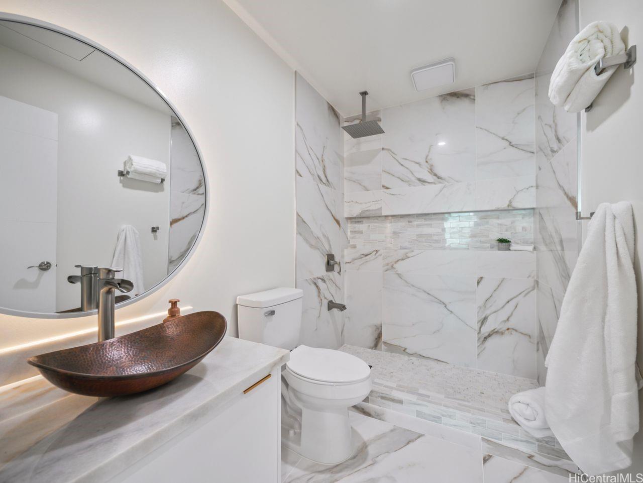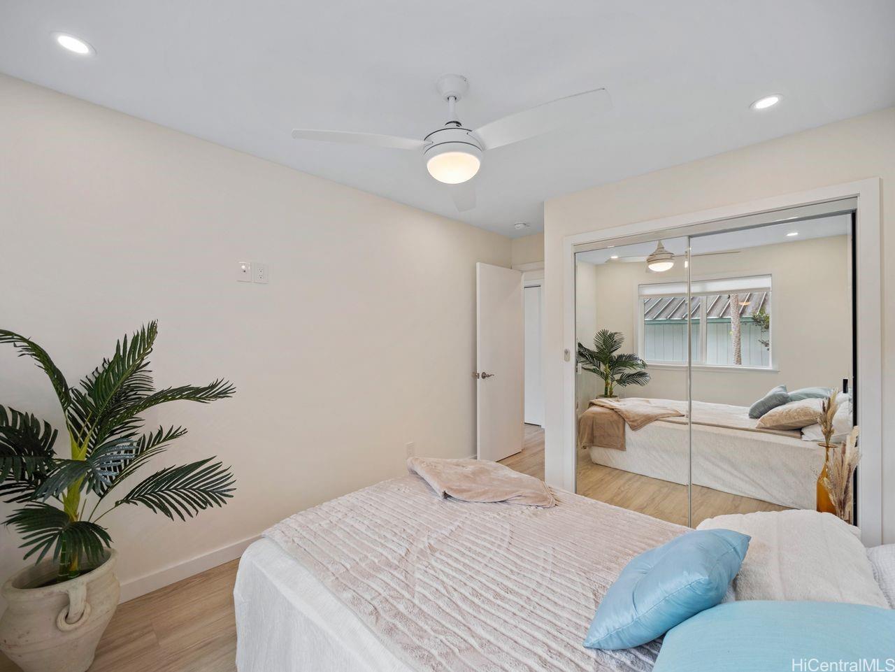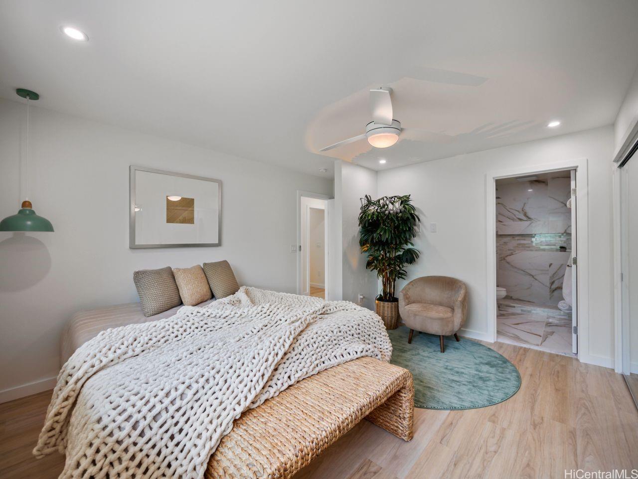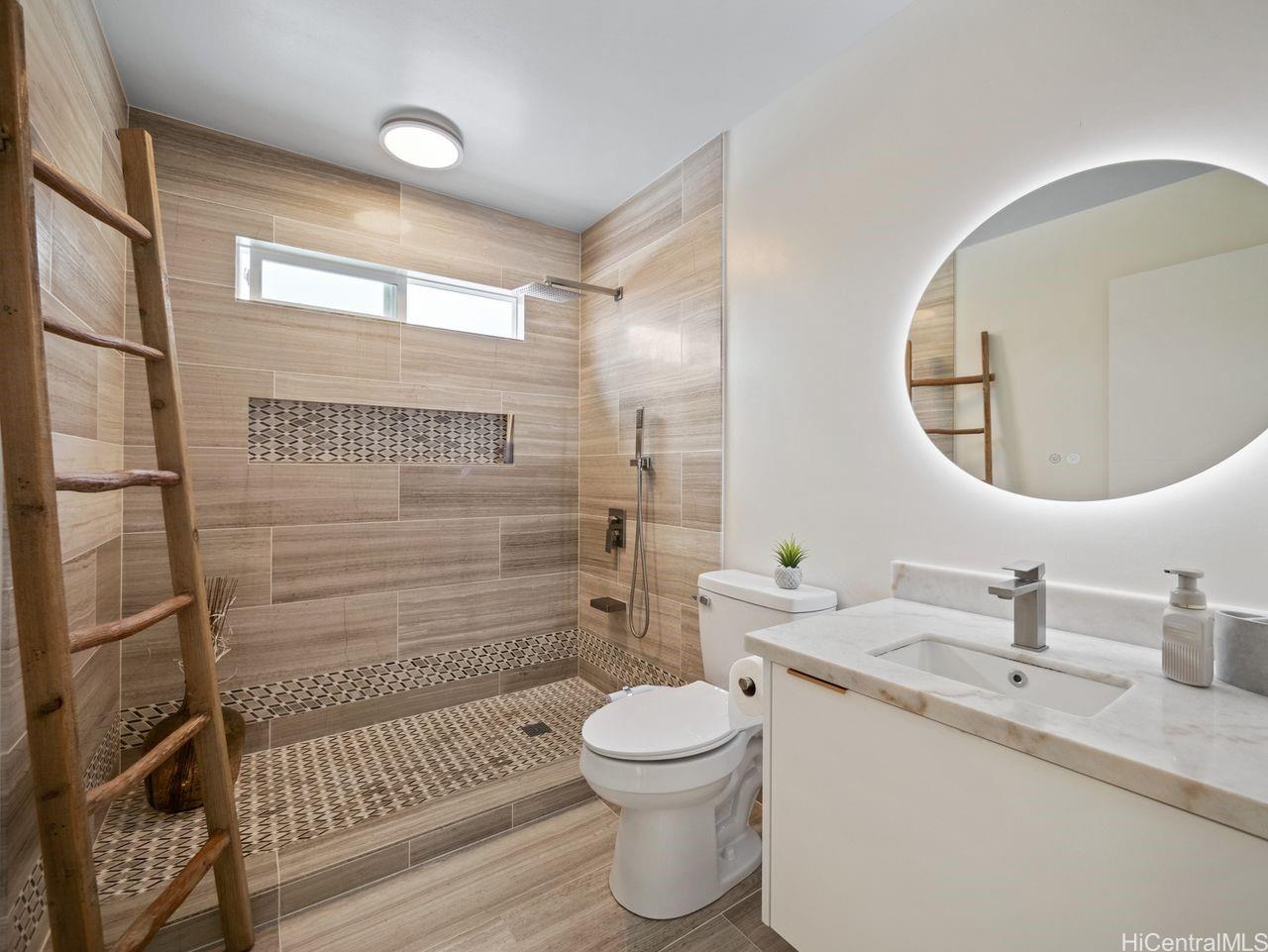 Hale Laule'a has been thoughtfully and meticulously updated to elevate its original structure with luxurious materials that support ethical, energy-efficient, and sustainable living for generations to come. With Japanese and Scandinavian influences, the home focuses on natural materials, minimalist aesthetics, and tasteful craftsmanship, encouraging mindful consumption and lasting quality: reducing waste and promoting eco-friendly living. With 7 bedrooms and 3.5 baths, this home is designed with multigenerational living in mind. This space supports sustainable living through shared resources and a smaller collective footprint. As you enter, the main living area extends to an attractive open deck, allowing a lot of natural sunlight as well as an extension of the outdoors to resonate. The downstairs kitchen boasts Sub-Zero appliances, which offer both luxury and long-term value. Upstairs has a permitted wet bar ideal for added flexibility, or creating a private in- law suite. The property is fully enclosed, with a variety of fruit trees & ample storage space. It is centrally located in a tucked-away neighborhood. This private oasis is just awaiting your personal touches.