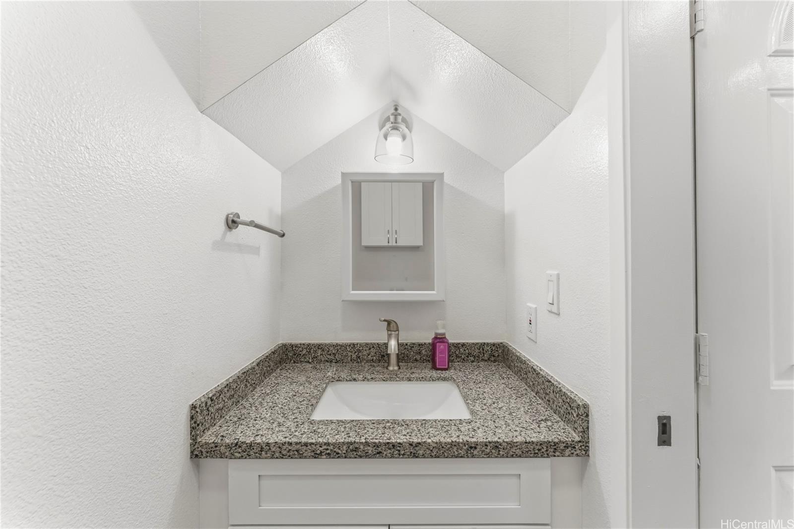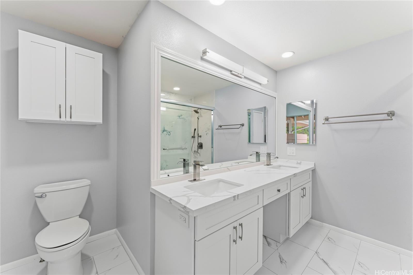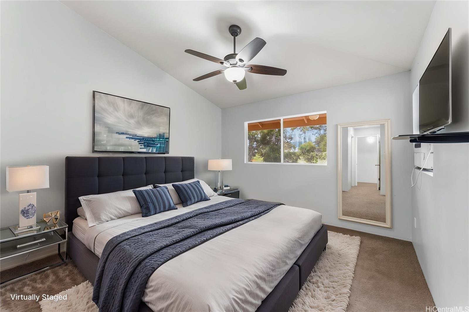 Golf course frontage 3 bedroom, 2.5 bath townhome in Greens at Waikele featuring 4 parking spaces! Recently remodeled kitchen plus vinyl plank flooring on main level. Upstairs primary bedroom has a large walk-in closet, golf course views, and the updated primary bathroom awaits with modern luxuries. Spacious interior layout is bolstered by a large, fenced-in private yard space overlooking Waikele Country Club. Ample storage and full sized washer/dryer are found in the 2 car garage, plus an additional 2 cars may be parked directly outside the garage. This well maintained community with generous guest parking is conveniently located near Waikele Premium Outlets, dining options, freeway access and more.