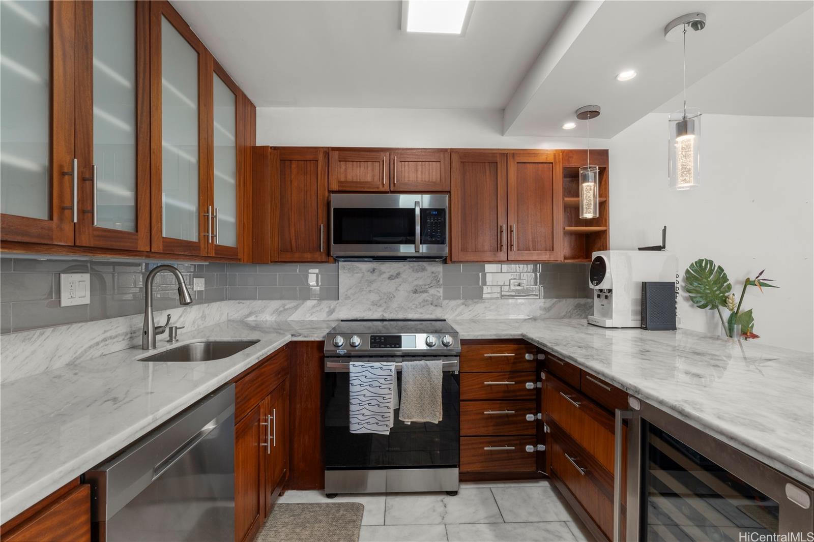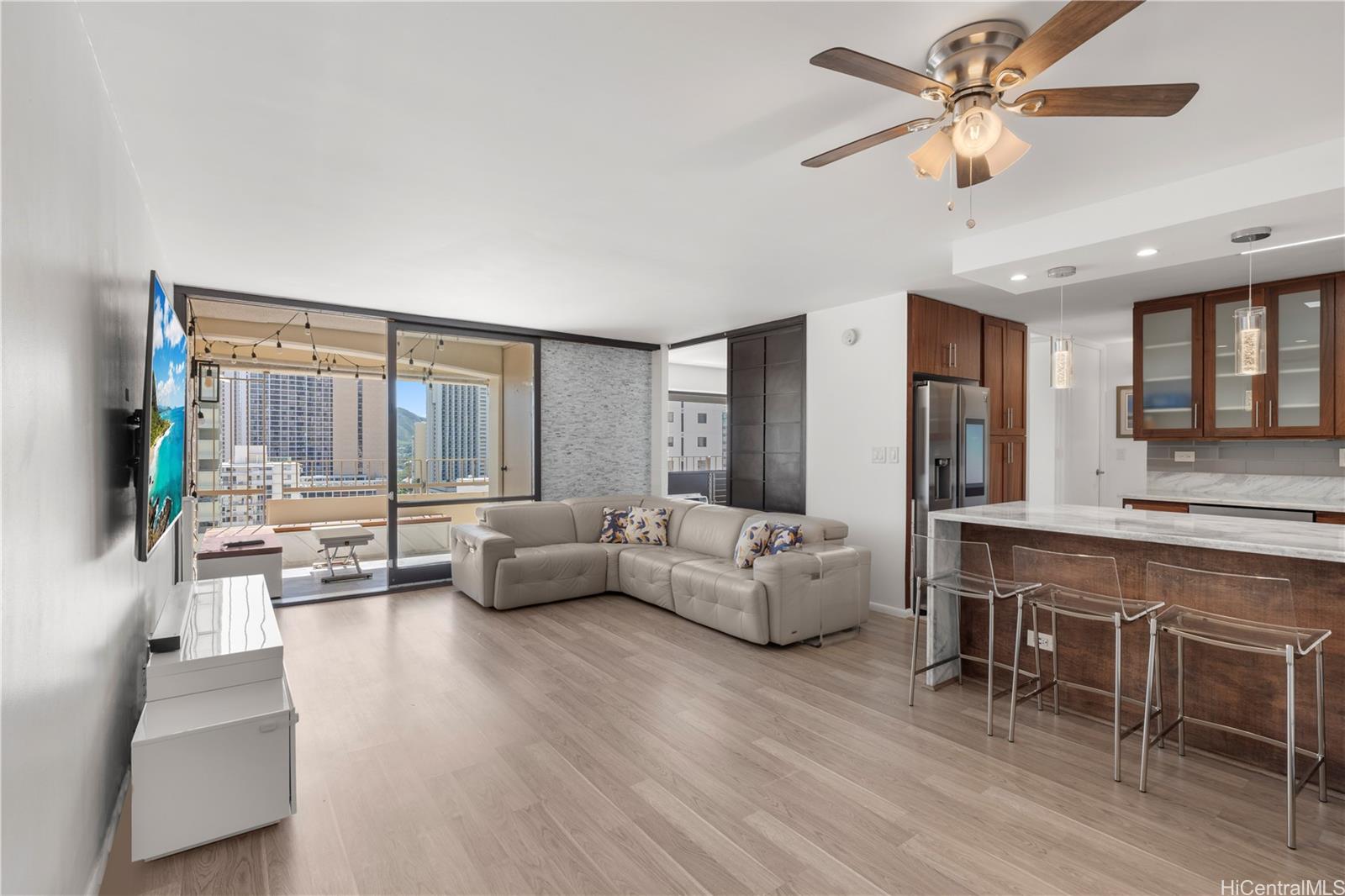 ワイキキの中心部に位置する、すぐにでも入居可能な2ベッドルームのペントハウスで、ビーチへの憧れを満たしましょう!ガバナー・クレグホーンにあるこの830平方フィートのペントハウスは、細部にまでこだわって改装されており、ターコイズブルーの太平洋、コオラウ山脈、そして象徴的なダイヤモンドヘッドの眺めを堪能できます。室内には、特注のキャビネット、ステンレス製の電化製品、ワインセラーを備えたグルメキッチンがあります。ウォークインクローゼットとスパのようなバスルームを備えた広々とした主寝室で、ゆったりとおくつろぎください。特注のベンチが置かれた広々としたプライベートラナイでは、夕日を眺めながらカクテルを片手に、心地よい貿易風を感じながら、室内と屋外が一体となった快適な暮らしをお楽しみいただけます。室内洗濯乾燥機、エアコン、ラナイ内の収納スペース、そして鍵付きエレベーターからすぐの場所にある人気の高い地上階駐車場など、モダンな設備も充実しています。建物には常駐の管理人と、友人や家族をもてなすのに最適な爽やかなスイミングプールがあります。世界的に有名なワイキキビーチからわずか2ブロック、インターナショナルマーケットプレイスからもすぐという絶好のロケーション。毎日がまるでバケーションのような暮らしを実現できるチャンスです!