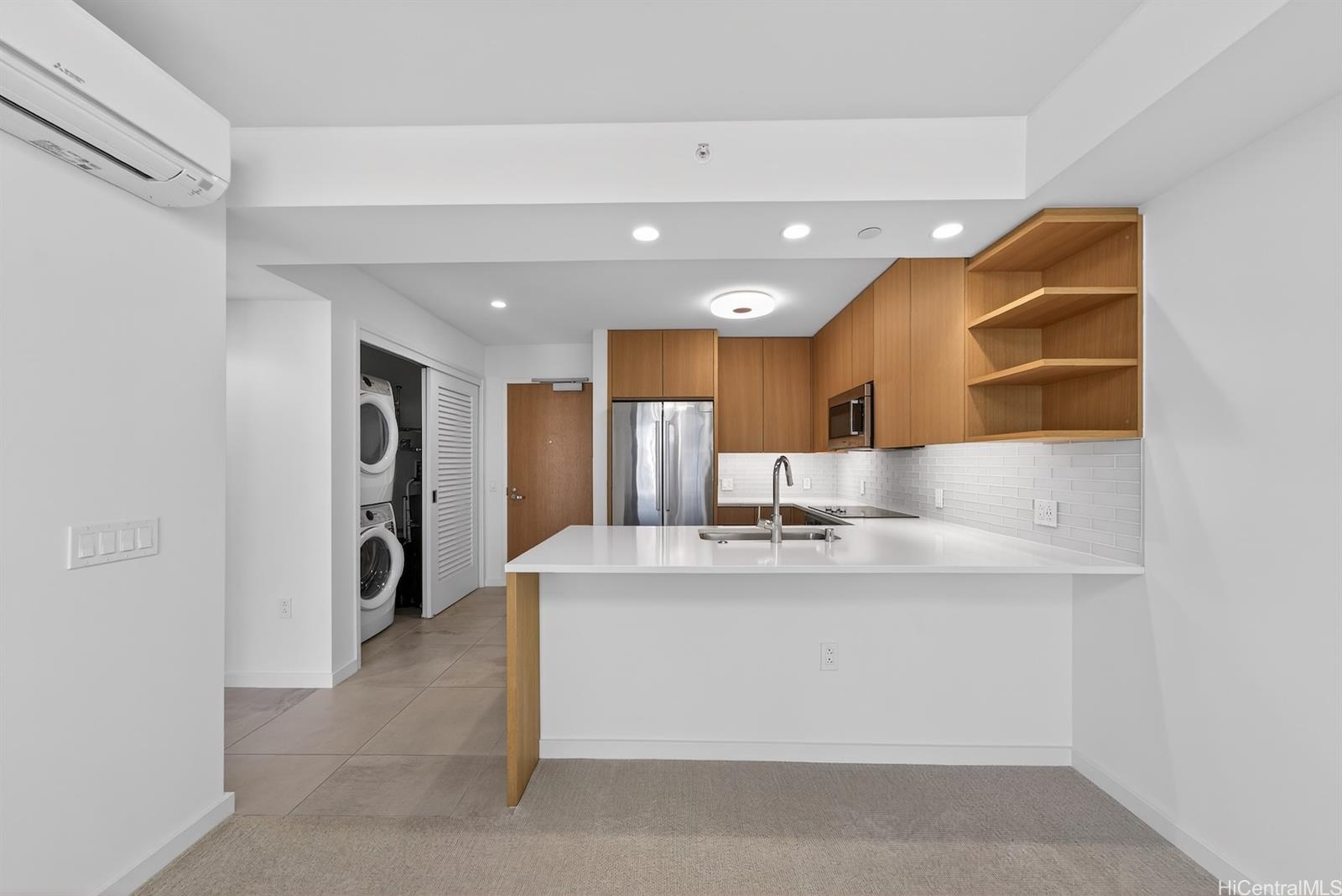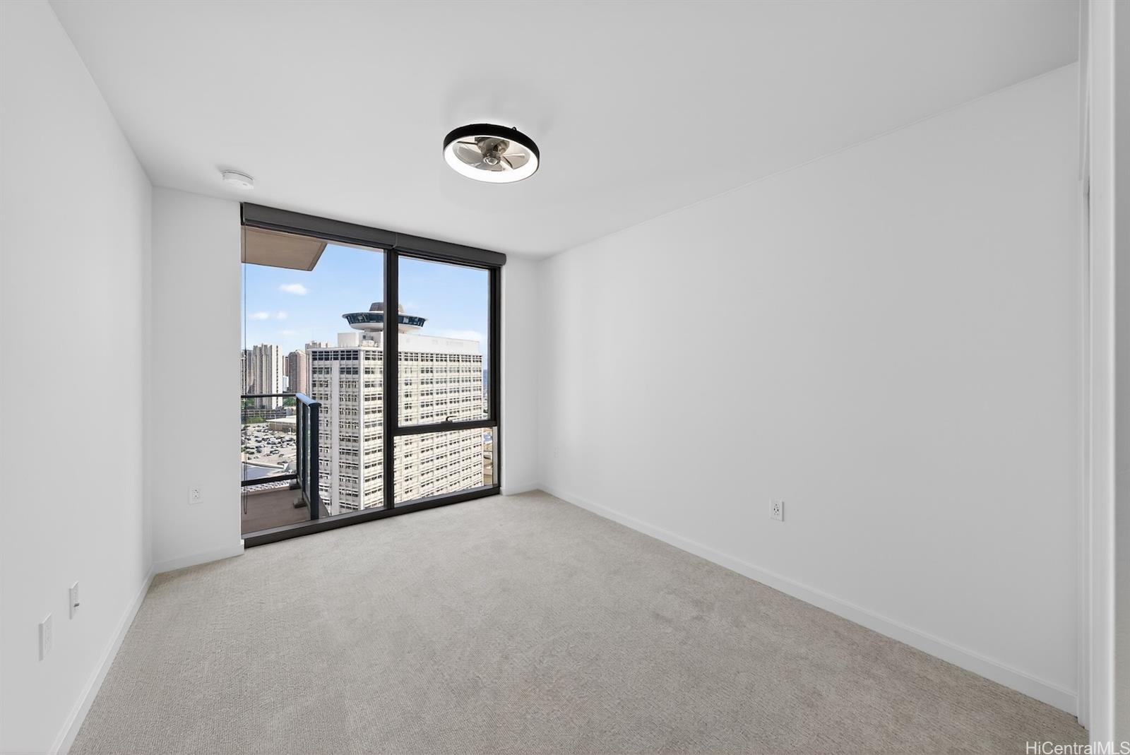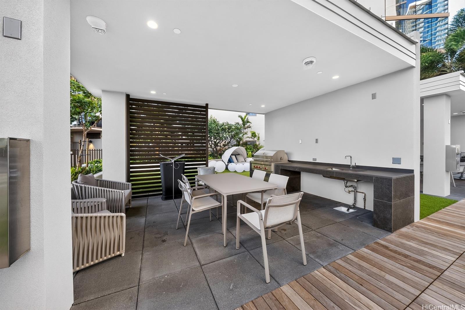 Sky Ala Moana West. Be ready to live on this high floor 1 bedroom, 1 bathroom with fantastic views. Located in the center of Ala Moana area and conveniently located near Ala Moana Shopping Center and Ala Moana Beach Park. Enjoy your luxury amenities in the building which features a pool and whirlpool spa, private dining rooms, playground, cabanas, BBQ area, fitness areas and more! Unit features upgraded stainless steel appliances, and quartz countertops. Covered garage parking stall which includes a convenient storage locker for you on the same floor.