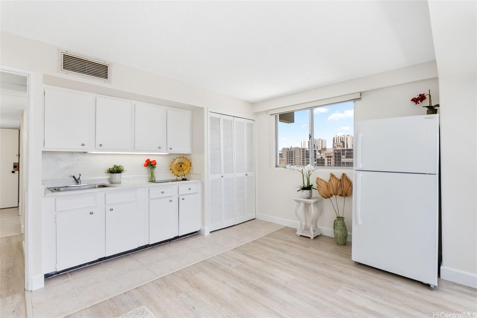 ワイキキ中心部の絶好のロケーション!ワイキキ・パーク・ハイツの11階にある、広々とした静かな角部屋ユニットは、風通しが良く明るく、改装済みの1ベッドルーム/1バスルームです。クヒオ通りから少し奥まった静かな環境で、自然光がたっぷりと差し込みます。新しいセントラルエアコン、屋根付きラナイ、最近の改修工事など、充実した設備が整っています。月々の管理費には、電気代やその他の光熱費が含まれています。プール、新しいエレベーター、常駐管理、ゲスト用駐車場を備えた安全な建物で、ビーチ、レストラン、ショッピング、カピオラニ公園にも近い最高のロケーションです。ワイキキ・パーク・ハイツは100%保険加入済みです!