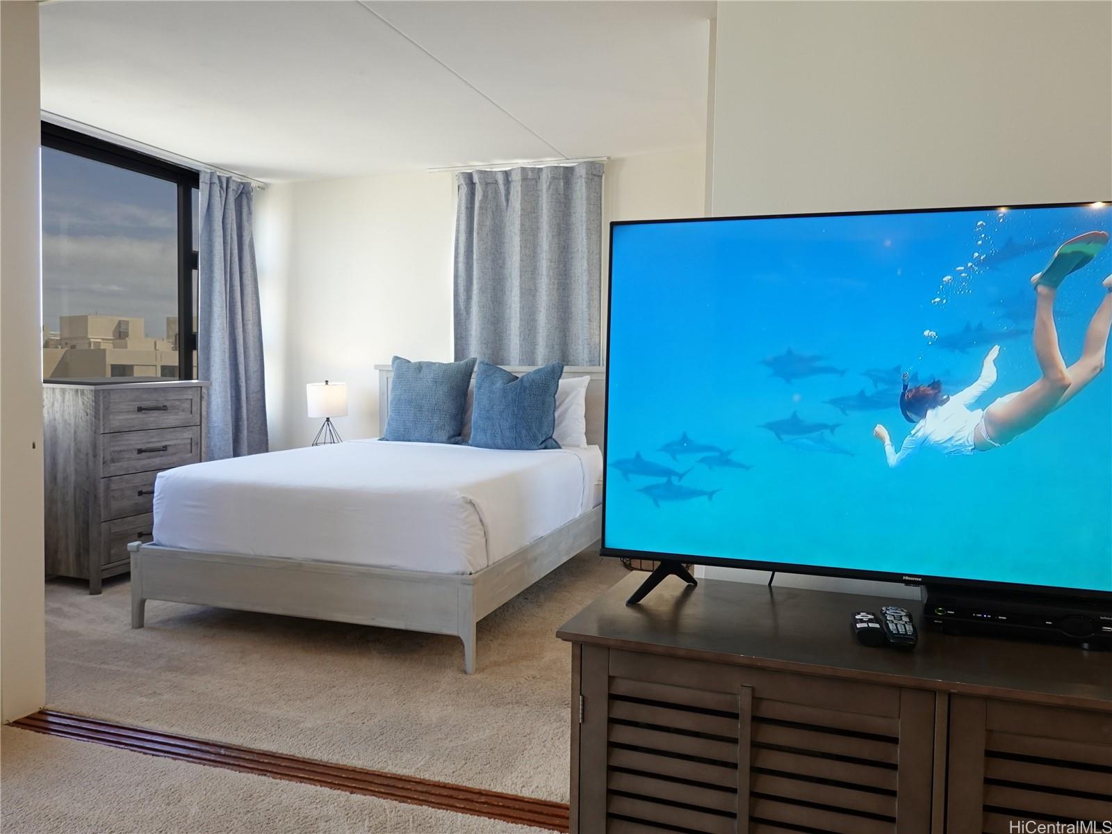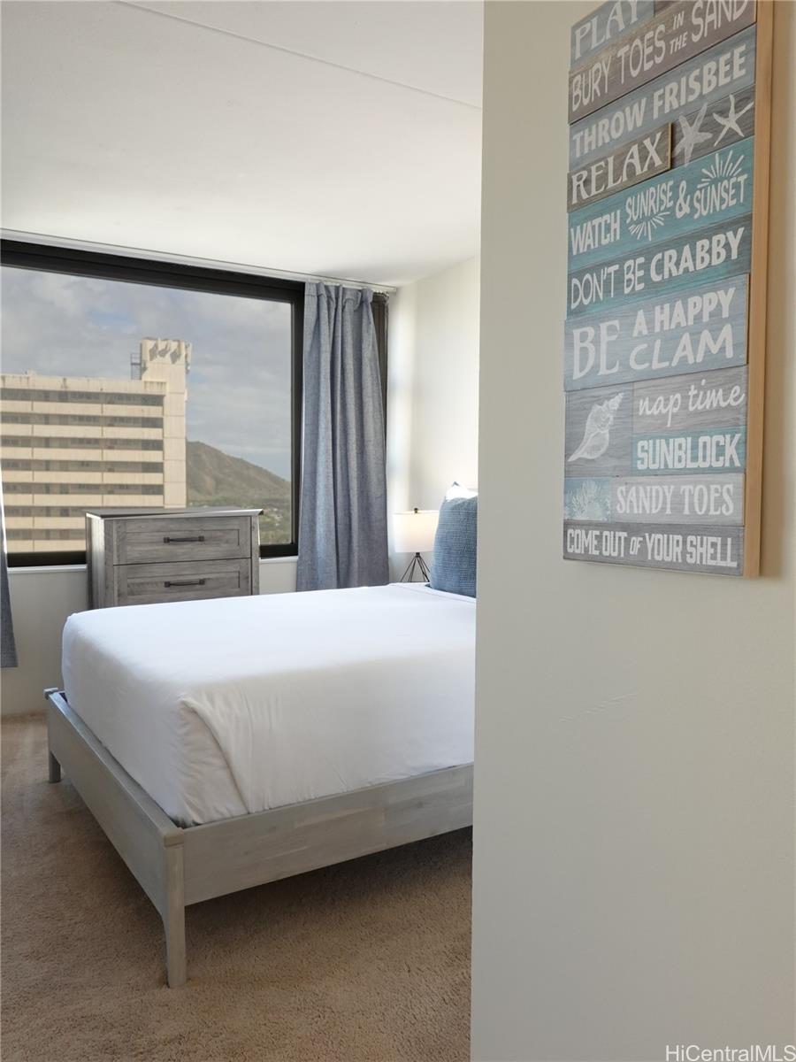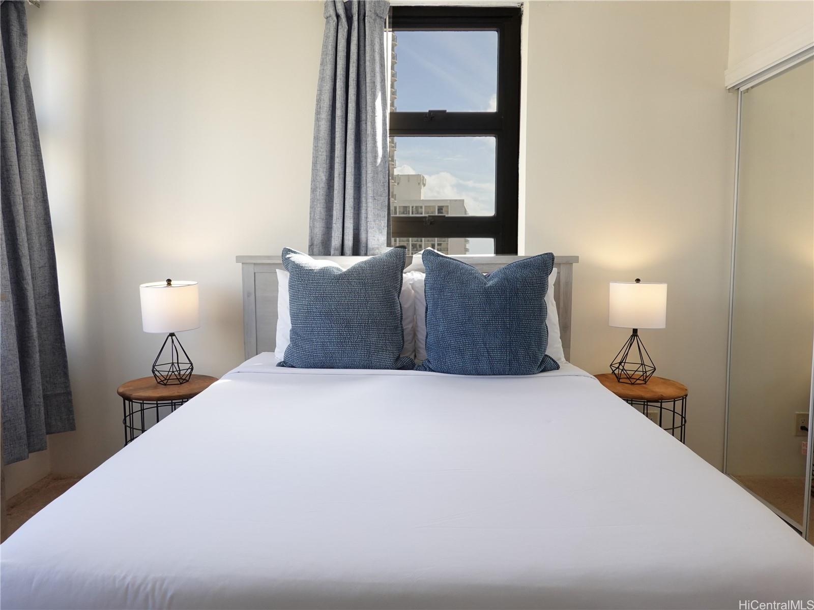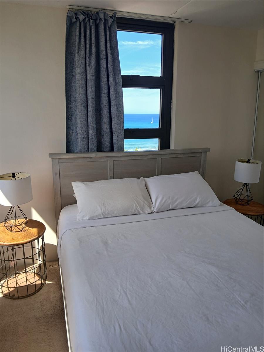 that gives the kitchen a clean, modern edge. The upscale bathroom travertine tiled shower is creating a spa-like retreat after a day in the sun. What truly sets this unit apart? Ocean views from kitchen & bedroom—a rare & valuable feature that keeps guests coming back & booking full. As a large corner unit, you’ll enjoy added privacy, natural light, airy feel. Offered fully furnished & turnkey for short-term rental, this condo is ready to generate income from day 1. Even better, it includes parking, a highly sought-after perk in Waikiki. Whether you're looking invest or secure a personal getaway that pays for itself, this Gem delivers the full island experience.