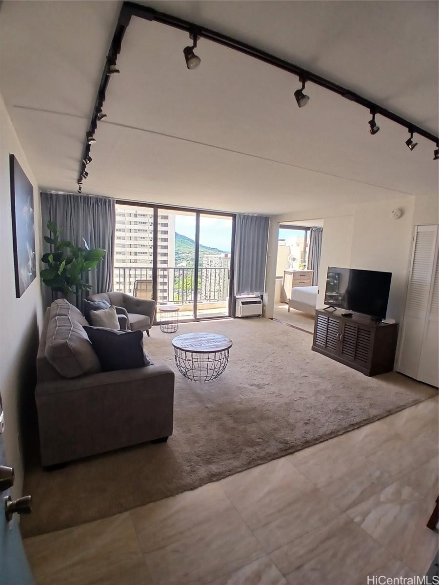 Welcome to your slice of island investment gold at the iconic Waikiki Banyan. This beautifully updated 1-bedroom, 1-bath corner unit blends comfort, style, & income potential in one irresistible package. Positioned just one block from the world-famous Waikiki Beach, this property is perfectly tailored for short-term rental success. Step inside & you’re greeted by travertine flooring that flows seamlessly through the dining & kitchen area, complemented by quartz countertops, upgraded cabinetry, a tasteful tile backsplash