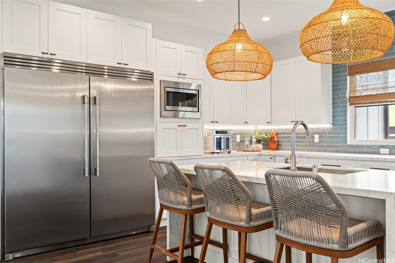 ククイウラのカイマリノ地区の静かな袋小路に位置するこの希少な5ベッドルーム、4.5バスルームの邸宅は、トロピカルな家族の隠れ家として、または収益性の高い投資用賃貸物件として最適です。海とゴルフコースの両方の景色を望める数少ない物件の1つであるこの物件は、トム・ワイスコフ設計のチャンピオンシップゴルフコースの9番ホールに位置しています。この家は、ほぼすべての部屋から広大な海の景色を眺めることができ、カウアイ島の自然な貿易風を取り込むように考え抜かれた配置になっています。屋外スペースには、緑豊かなトロピカルな造園が施され、プライバシーと楽しみのためにフェンスで囲まれたプライベートな裏庭があります。オープンコンセプトのリビングエリアは、フリートウッドの引き込み式ドアを通して屋外のラナイにシームレスにつながり、楽な屋内/屋外生活を実現します。洗練されたインテリアは、上質な生活と楽なもてなしの両方のために設計されており、この物件は洗練と機能性のシームレスな融合を示しています。この家は、それぞれが静かな隠れ家として機能する2つのメインスイートによって独自に特徴付けられています。すべてのコメント、データは販売者または販売者の代理人によって提供されています。