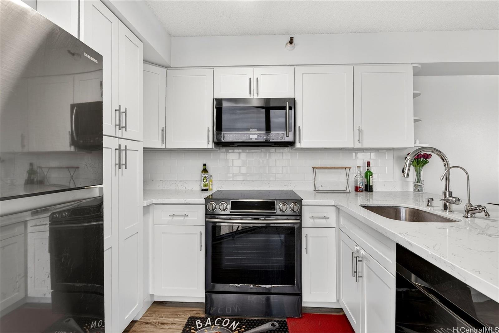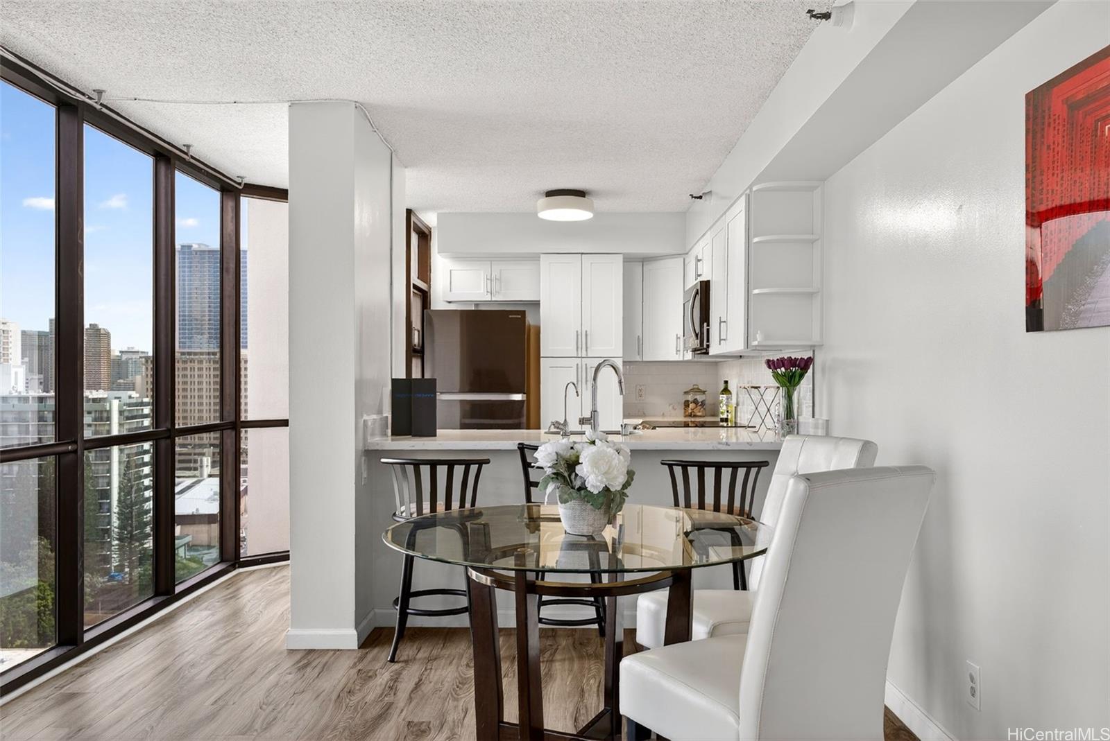 Modern and Spacious 2-Bedroom Living with 2 parking in the heart of town. Renovated in 2018 with luxury vinyl plank, quartz countertops, cabinets and more! Enjoy amazing views from the mountain to city to Diamond Head with floor-to-ceiling windows. Pet friendly with sprinkler system. Amenities include: BBQ areas, club house, pool + jacuzzi, additional outdoor spaces. Located off the main Keeaumoku St for quiet and more private living. One block from all Keeaumoku area has to offer at, from restaurants, shops, Don Quixote, and more. Few minutes from Ala Moana Shopping Center.