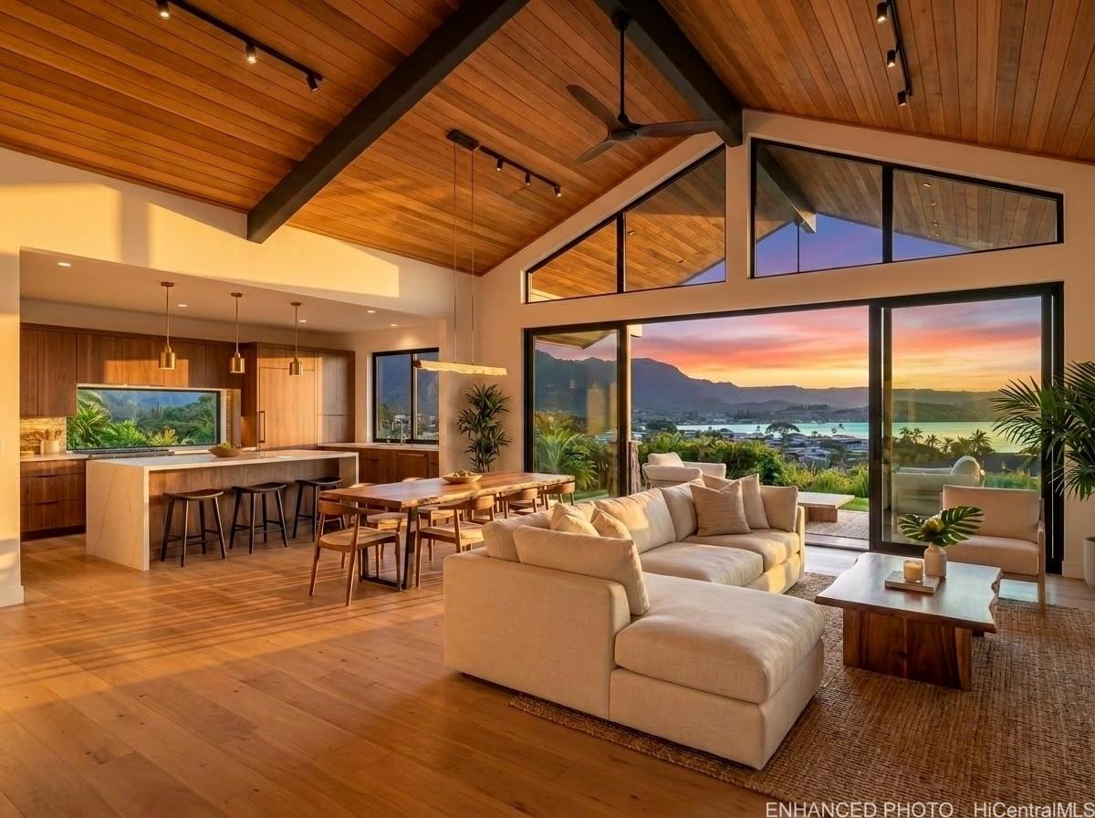 This parcel boasts unobstructed views of Kane’ohe Bay and the Ko’olau ridgeline. Wake to ocean breezes and watch the mountains ignite at sunset from your covered lanai.