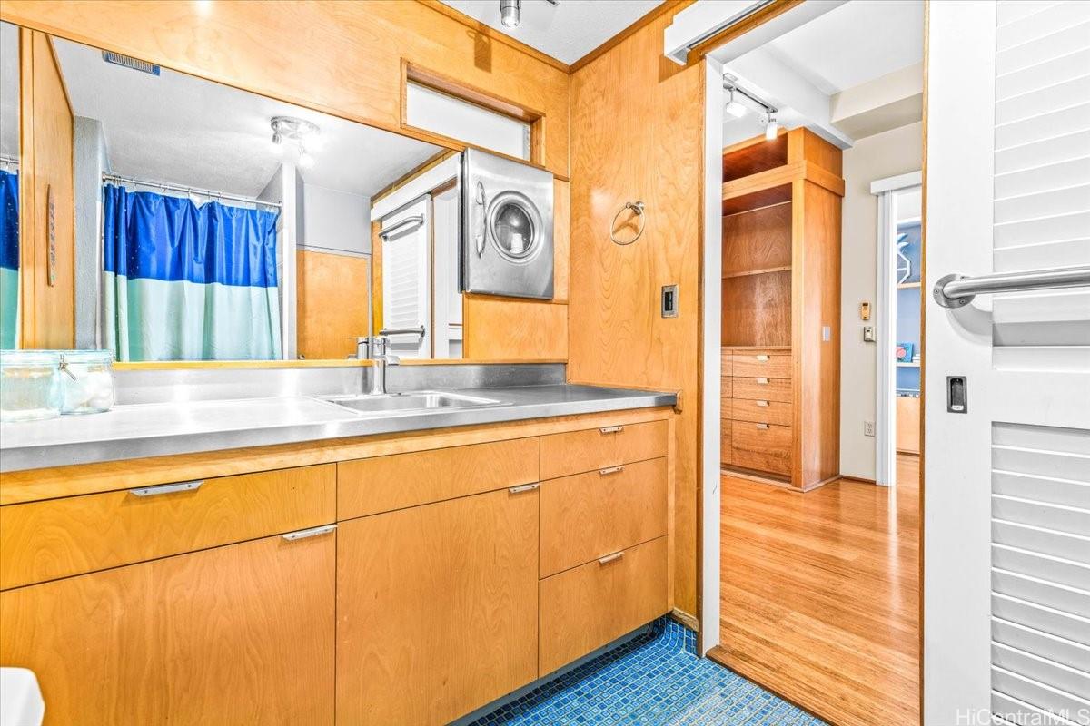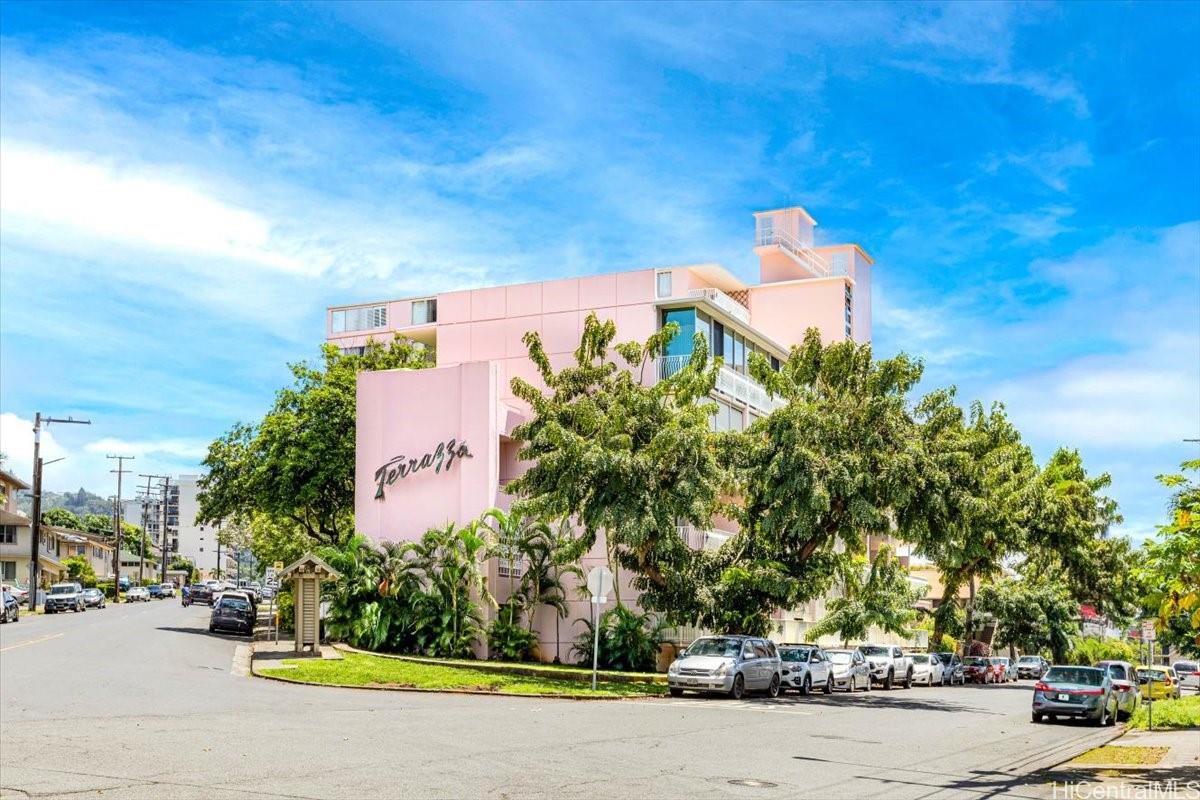 ペントハウス階に位置するこの1ベッドルームのロフトスタイルのコンドミニアムからは、ホノルルのパノラマビューが一望でき、夕日と海の一部が見渡せます。床から天井までの大きな窓からは自然光がたっぷりと差し込みます。改装された高い天井には工業的な仕上げが施され、空間を開放し、明るく広々とした開放的な居住空間を作り出しています。寝室からは景色を眺めながら目覚めることができ、収納に便利な引き出し付きの大きなカスタムクローゼットも備えています。キッチンには、ヴィンテージ感を保つ木製キャビネットに、新しいクォーツカウンタートップとモダンなバックスプラッシュが組み合わされています。露出したレンガのアクセントウォールが、工業的でスタイリッシュな要素を加えています。新しい竹製の床、新しいシーリングファンと照明器具、再仕上げされたシャワー、電気設備の改善など、細部にまでこだわって改装されています。バスルームは、目を引く青いタイルが個性を添えるスタイリッシュなレトロ美学で、元の魅力を活かしています。屋根付きの専用駐車場1台分が含まれています。ペット可の建物で、海水プール、共用ランドリー、駐輪場、ゴミ収集シュート、エレベーター、常駐管理人などの設備が整っています。ハワイ大学、ブレイズデルセンター、ダウンタウン、ワイキキ、病院までわずか数分です。