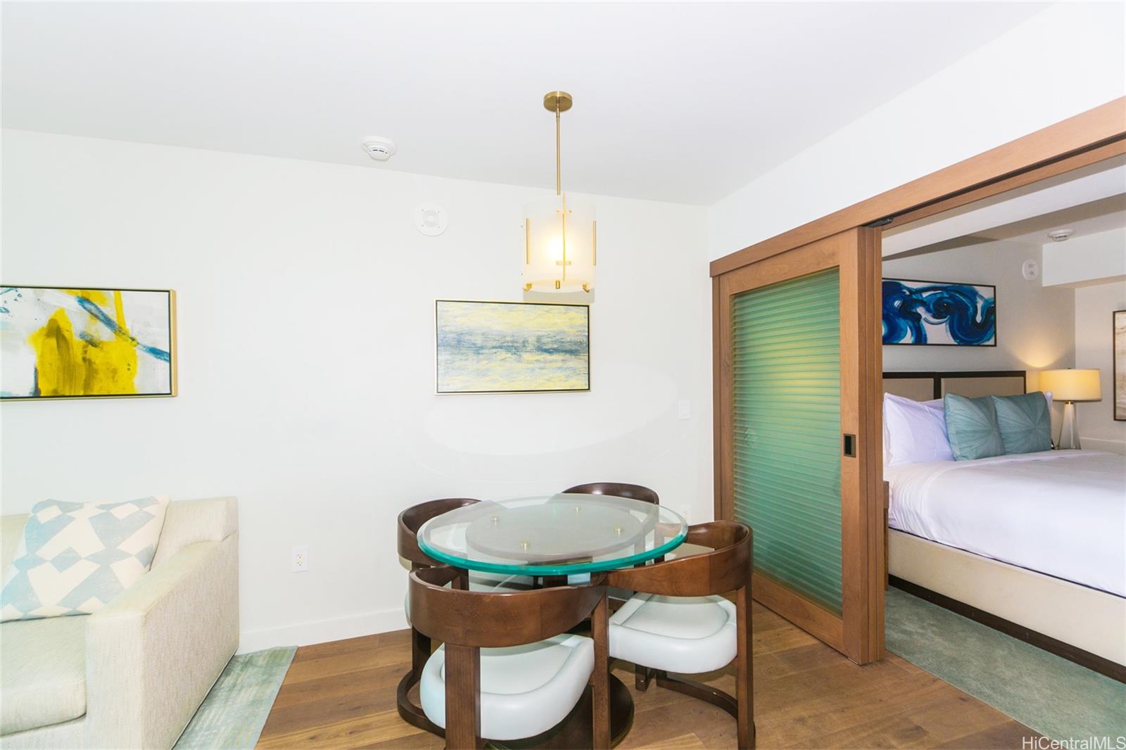 The well-appointed interior features a modern open layout, premium finishes, and a fully equipped gourmet kitchen with high-end appliances. Enjoy indoor-outdoor living from your private lanai, perfect for relaxing or entertaining. The spacious bedroom provides comfort and tranquility, complemented by a sleek, spa-inspired bathroom.