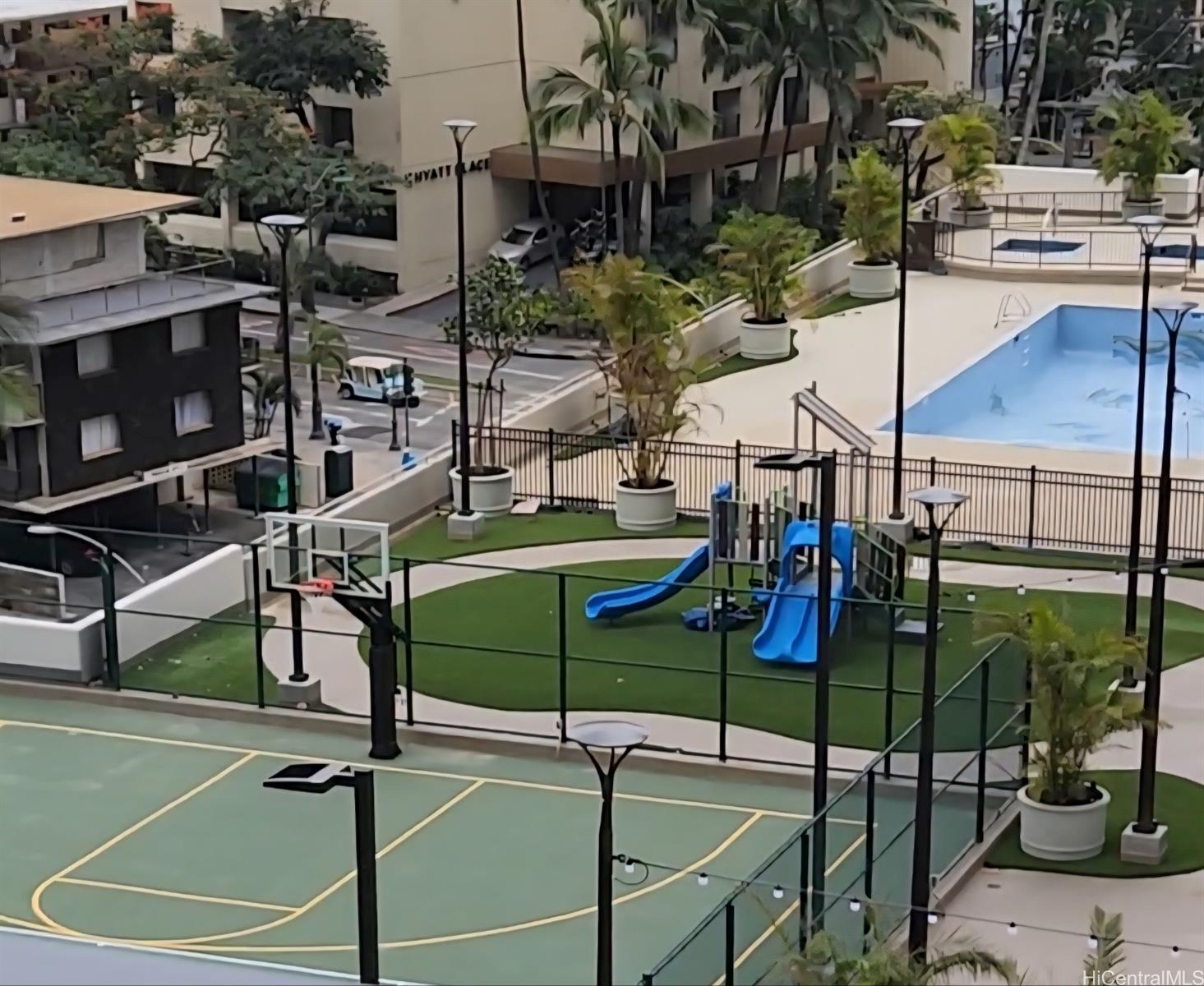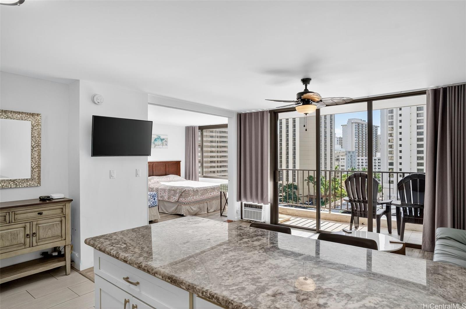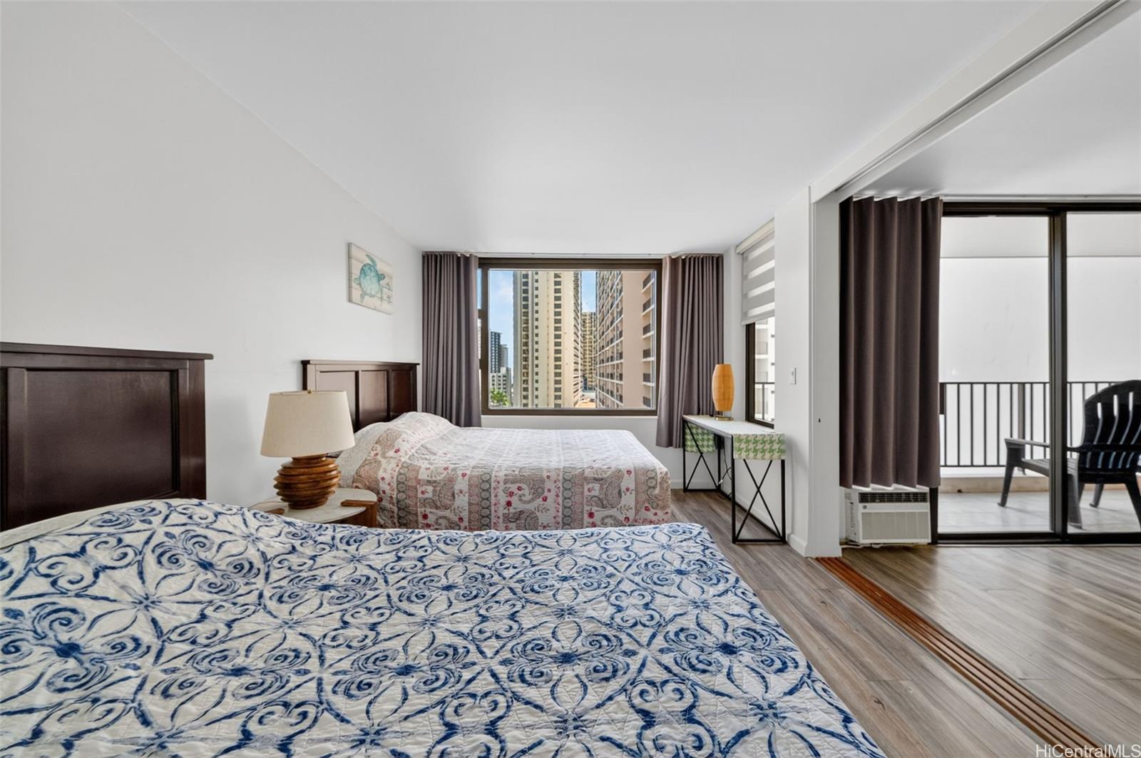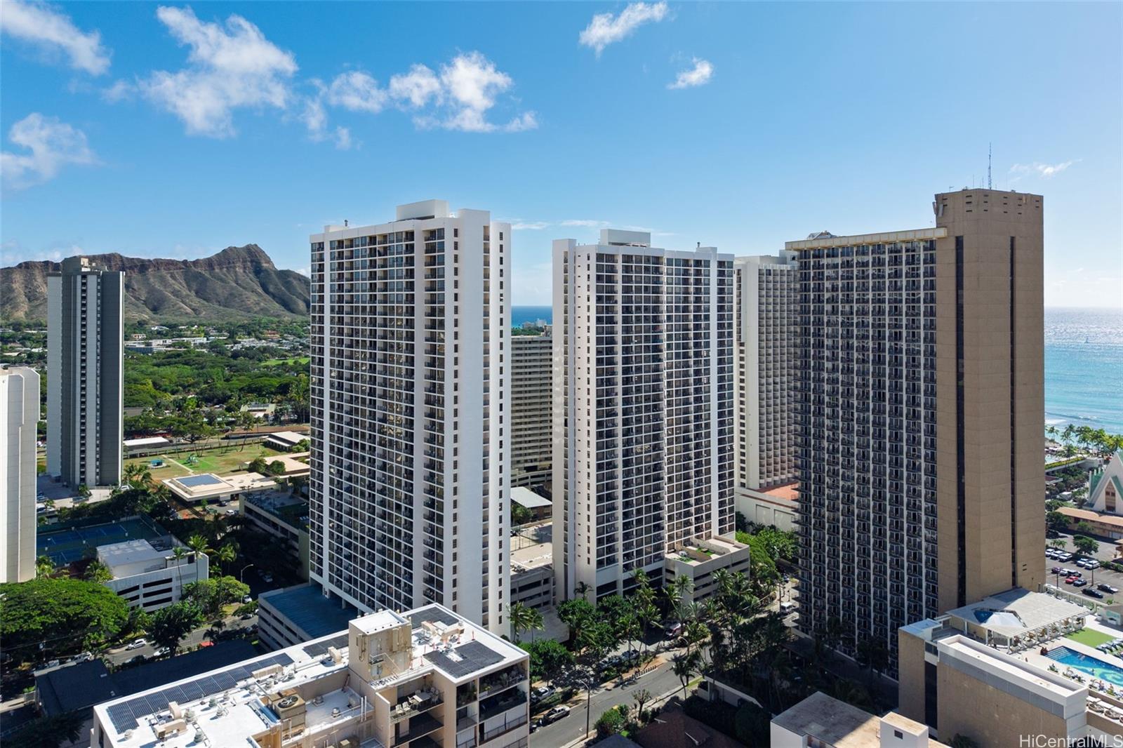 Legal short-Term Rental condominium in the heart of Waikiki! Completed gutted and renovated with new light fixtures and countertops. cabinets, and appliances. This condo is fully furnished. Brand new recreation deck with beautiful amenities such as a pool, whirlpool, playground, BBQ area, including a convenience store and coffee shop on site. This condo is just one block from the famous Waikiki Beach and within easy walking distance of restaurants, shopping, entertainment, the Honolulu Zoo, and Kapiolani Park. Live here year-round, part-time, or even for a few weeks out of the year, and rent out for income when you are not using it. Views from the lanai include Diamond Head, the Peak a boo ocean view, and the city. The maintenance fee includes all utilities, cable TV, internet, water, hot water, sewer, and one unassigned parking stall. Elevators were upgraded with modern interiors. This unit comes with a storage unit (236B) with an annual fee of $120. Whether you are looking for a full-time residence, a second home, or a vacation rental, this unit is a great value! The monthly sandwich lease of $52.20 ends on November 2035.