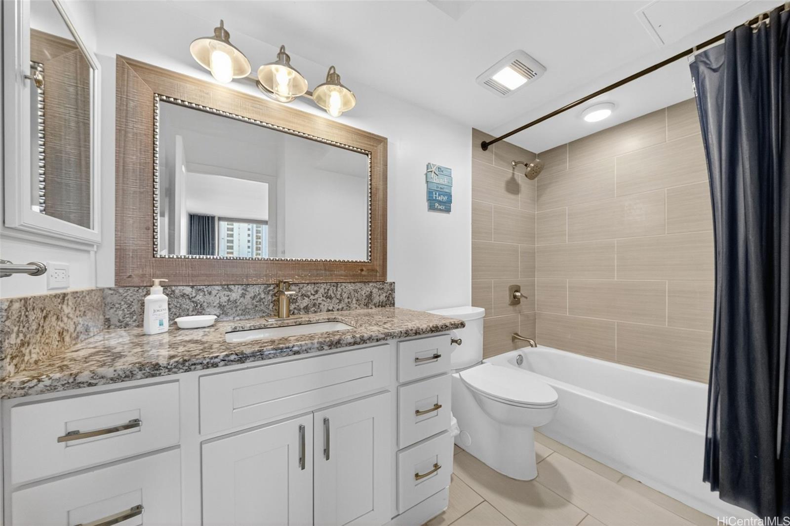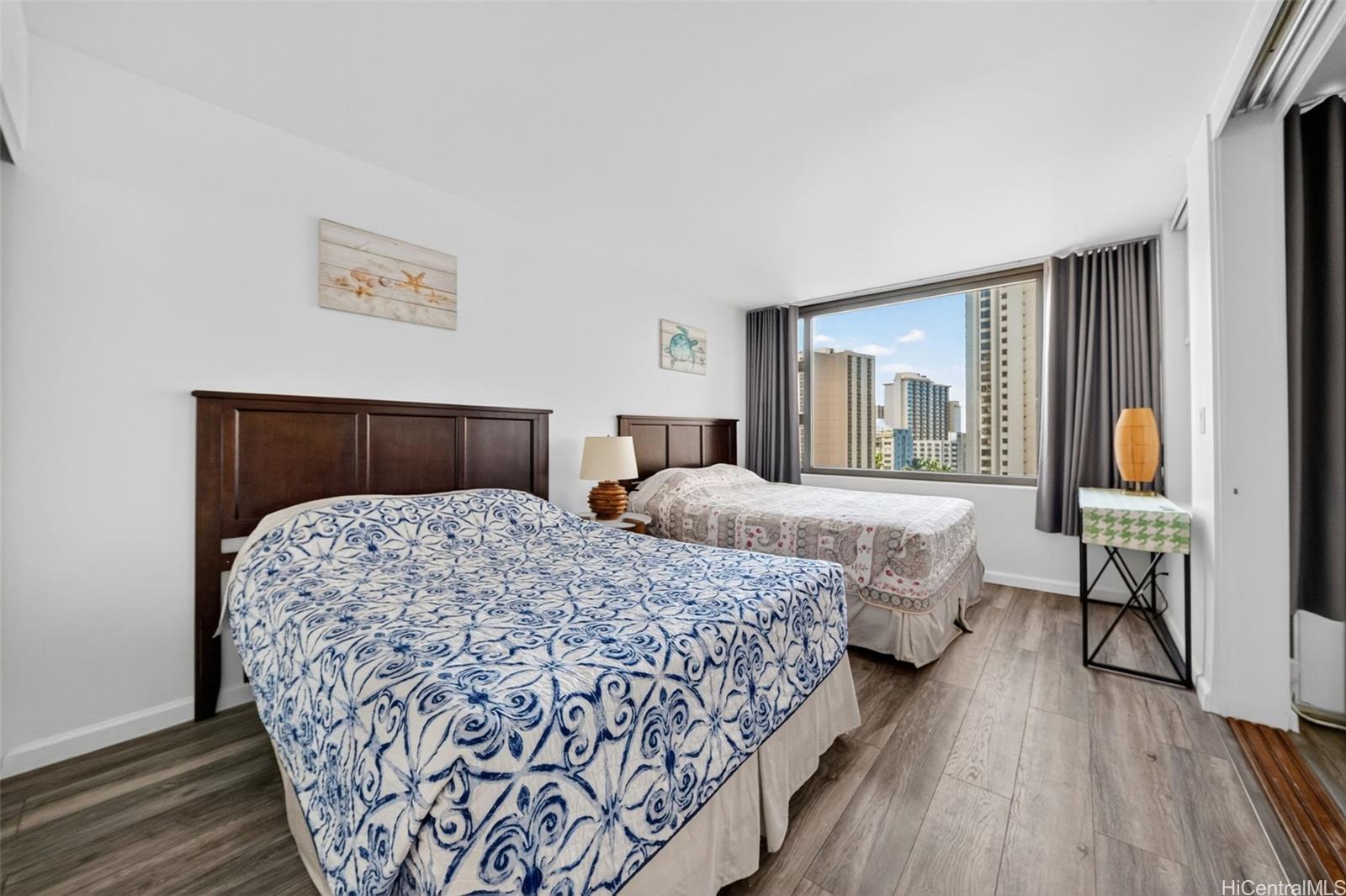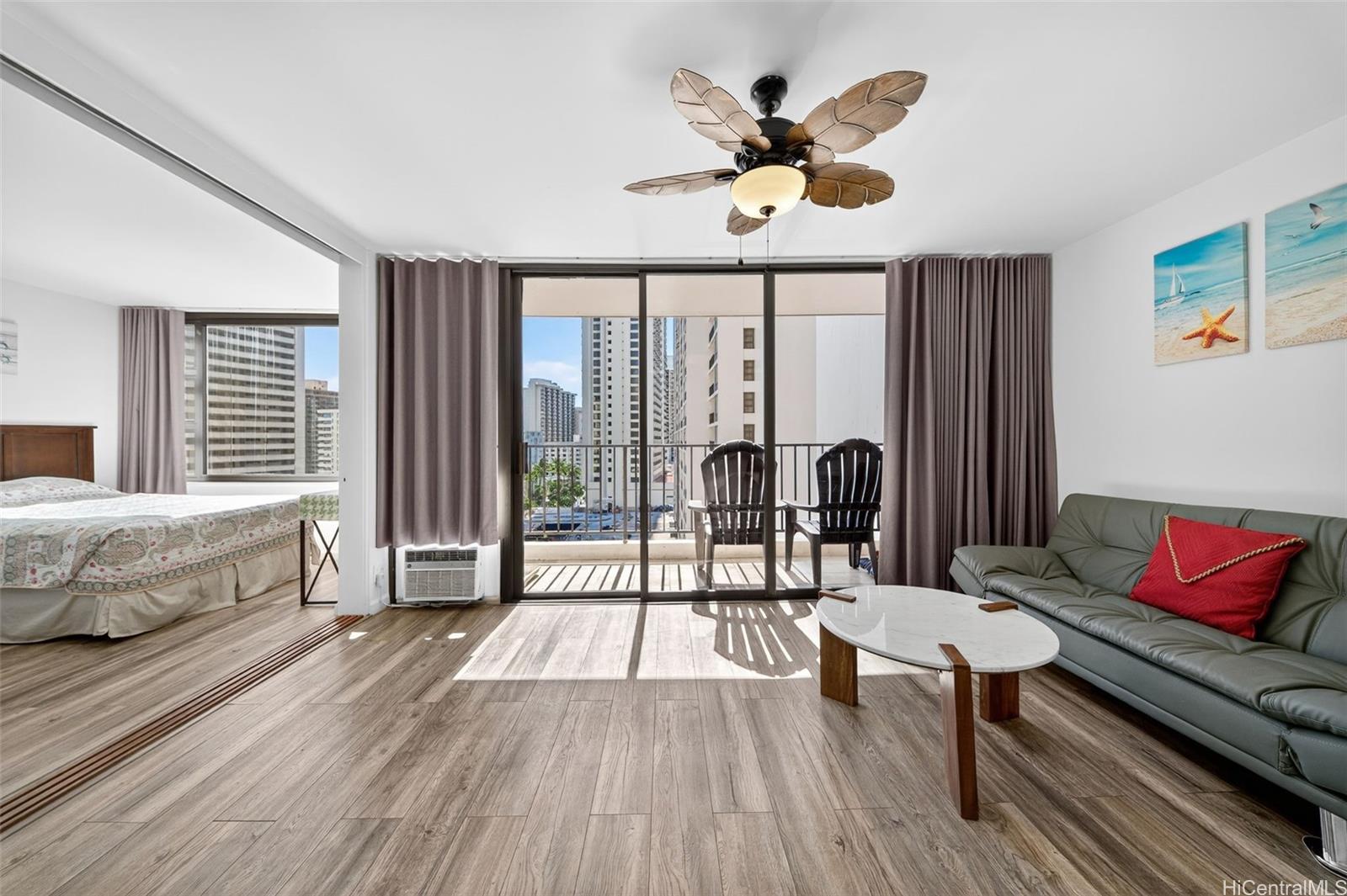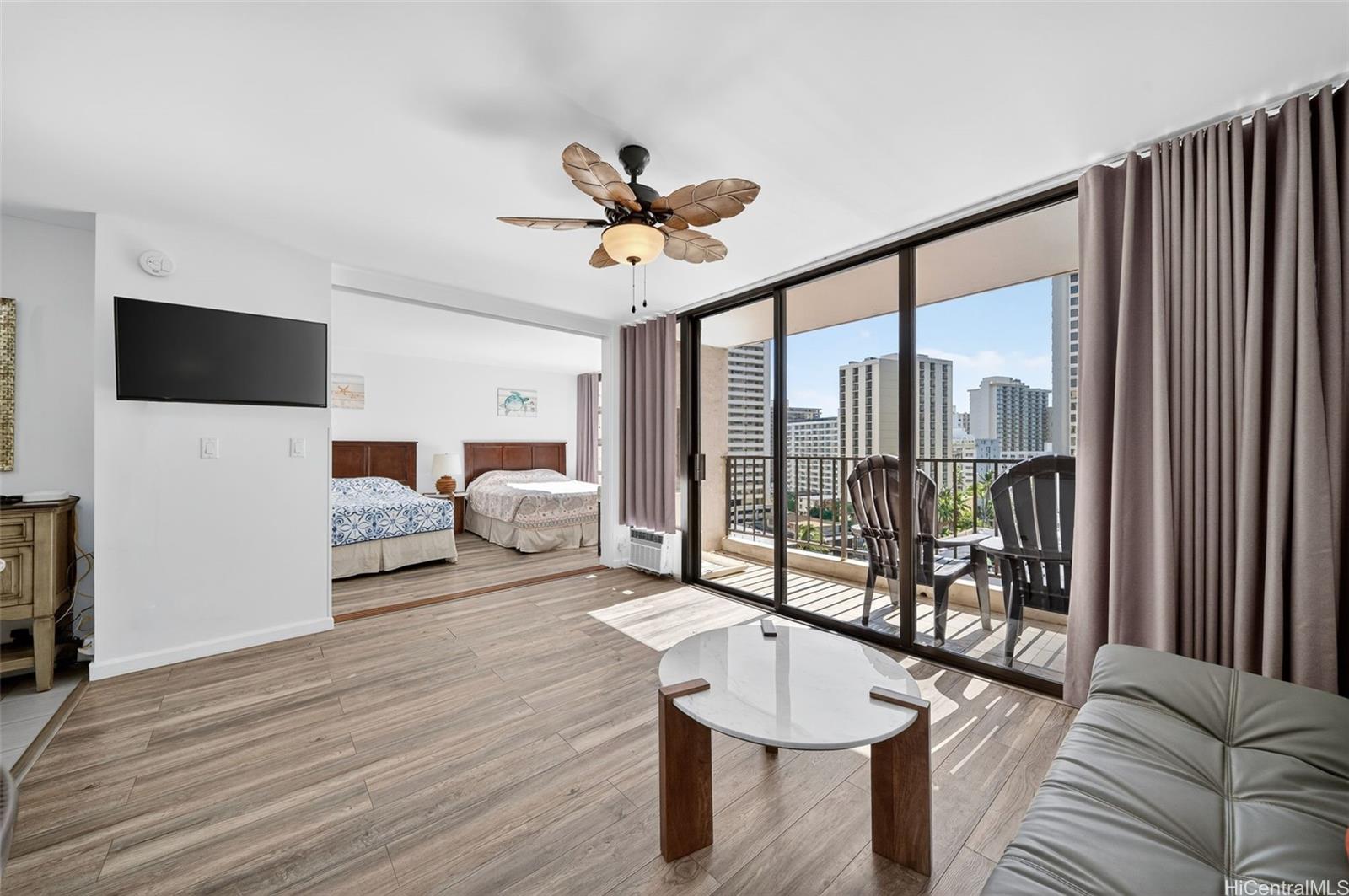 Legal short-Term Rental condominium in the heart of Waikiki! Completed gutted and renovated with new light fixtures and countertops. cabinets, and appliances. This condo is fully furnished. Brand new recreation deck with beautiful amenities such as a pool, whirlpool, playground, BBQ area, including a convenience store and coffee shop on site. This condo is just one block from the famous Waikiki Beach and within easy walking distance of restaurants, shopping, entertainment, the Honolulu Zoo, and Kapiolani Park. Live here year-round, part-time, or even for a few weeks out of the year, and rent out for income when you are not using it. Views from the lanai include Diamond Head, the Peak a boo ocean view, and the city. The maintenance fee includes all utilities, cable TV, internet, water, hot water, sewer, and one unassigned parking stall. Elevators were upgraded with modern interiors. This unit comes with a storage unit (236B) with an annual fee of $120. Whether you are looking for a full-time residence, a second home, or a vacation rental, this unit is a great value! The monthly sandwich lease of $52.20 ends on November 2035.
