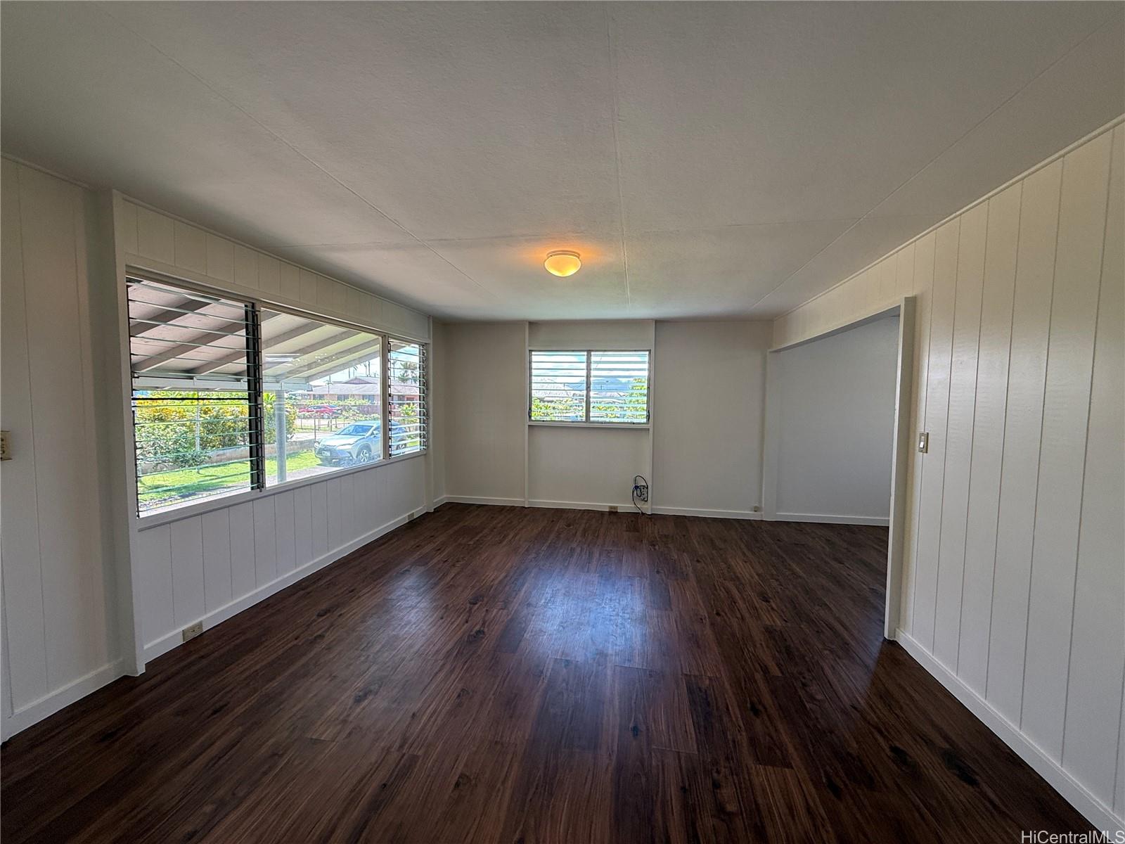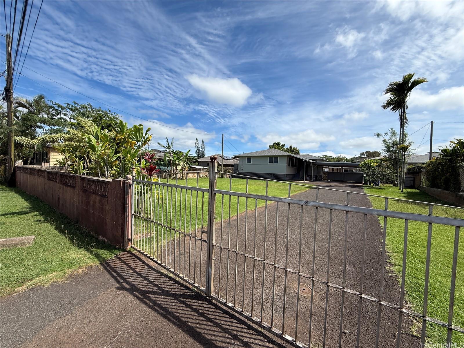Great move-in ready 3-bd 2 bath home located in the quiet family-friendly residential area of Whitmore Village, with lush surroundings and close proximity to the North Shore. Has a spacious 9263 SF lot area, R-5 zoning with potential for 2 separate dwellings or duplex, and ADU. Home has new exterior & interior paint, new composition shingle roof, recently renovated kitchen. Walking distance to elementary school and community park. Conveniently located close to Wahiawa commercial town for shopping, eateries, Queen’s Medical Center-Wahiawa. Shopping in nearby Mililani shopping center, and Waipio Costco & Walmart.