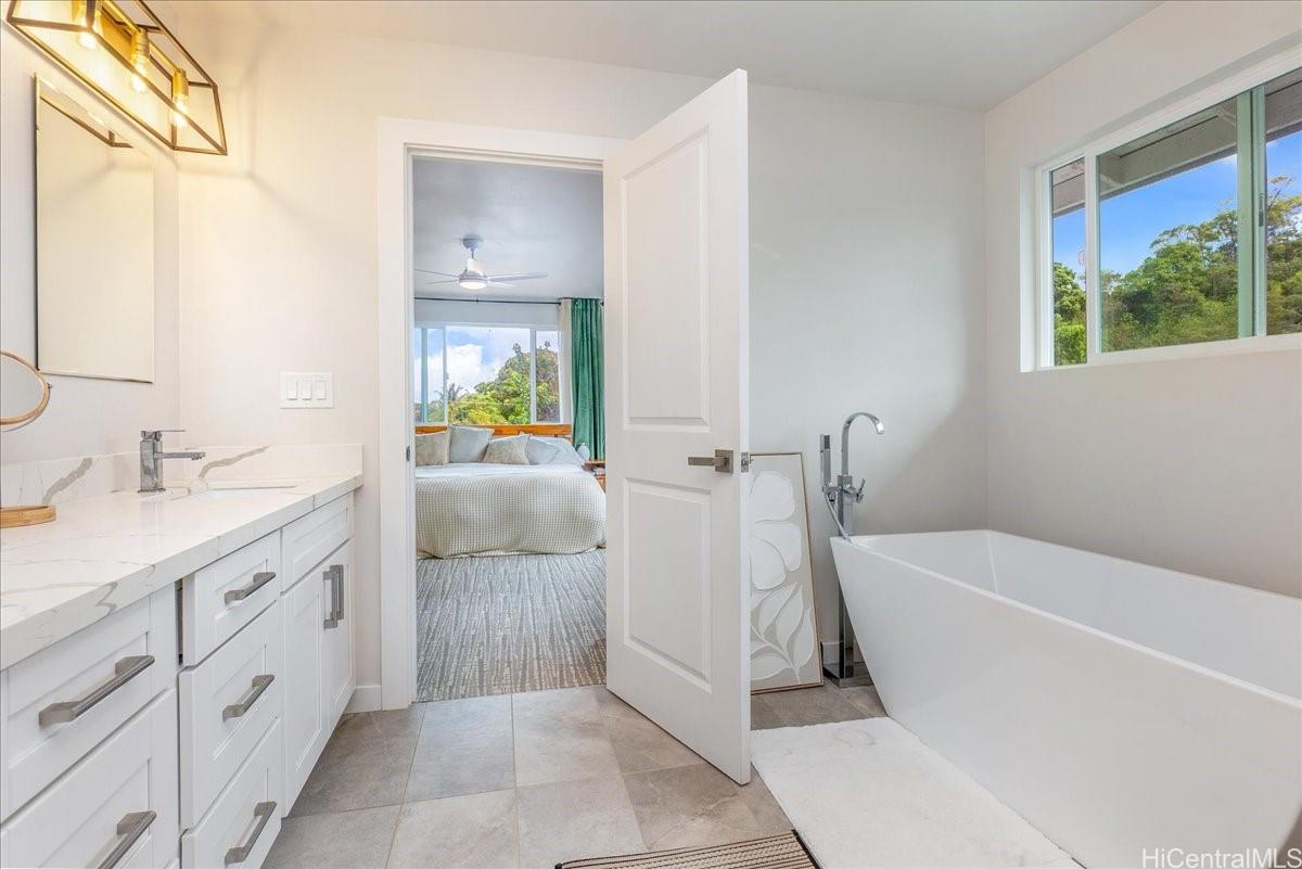 Discover modern island living at its finest in this beautifully designed 4-bedroom, 3.5-bathroom home, perfectly positioned on a corner lot with views of the Koolau Mountains. This property blends contemporary style, comfort, and functionality—ideal for both homeowners and investors alike. The gourmet kitchen features quartz countertops, stainless steel appliances, and a spacious island that flows effortlessly into the dining and living areas—perfect for entertaining or relaxing with family. This home is currently rented, Don’t miss this opportunity to own a modern gem on the windward side — perfect for living, investing, or both! Generating strong rental income, making it a fantastic opportunity for investors seeking a turn-key property in a desirable neighborhood.