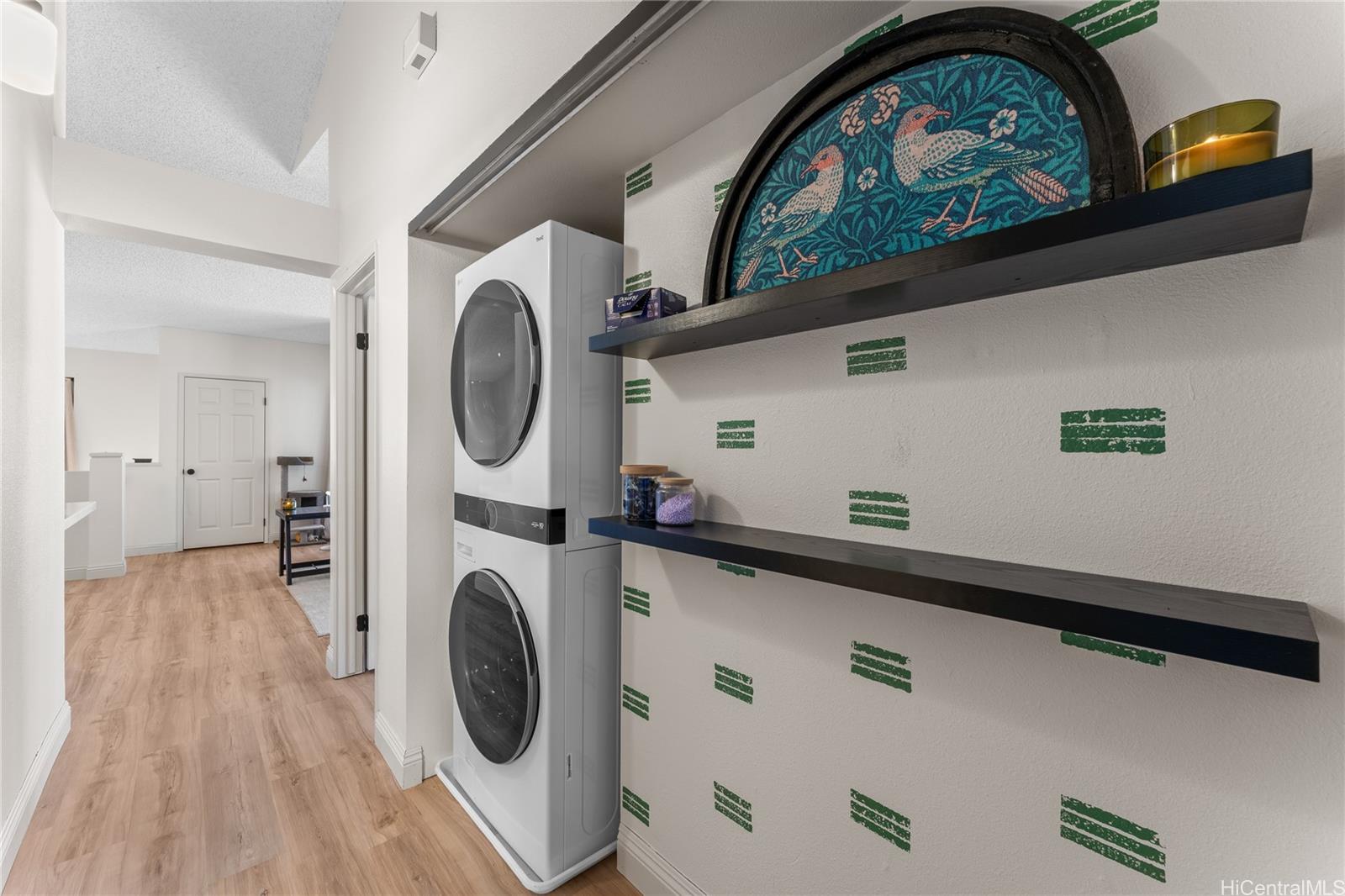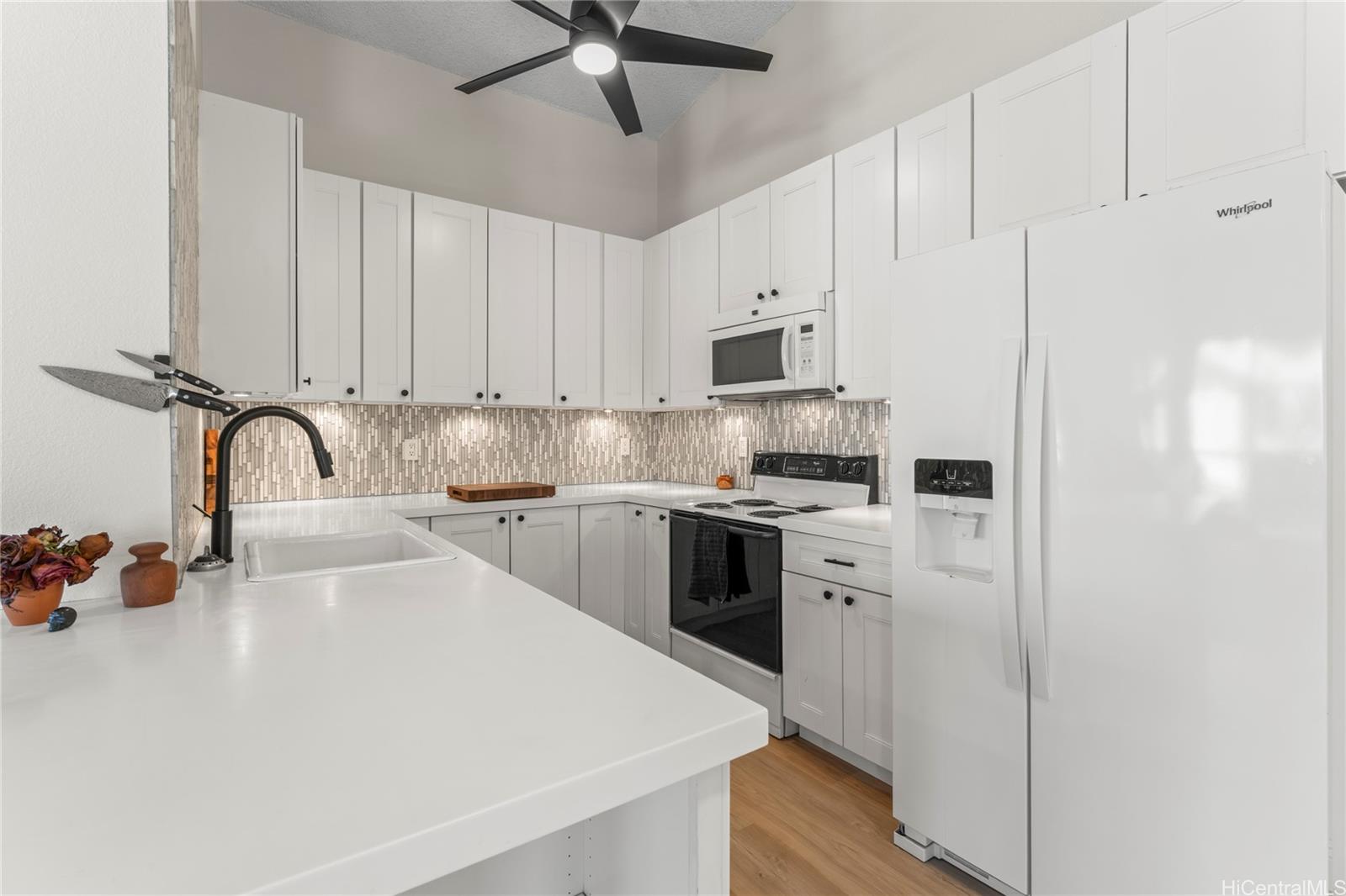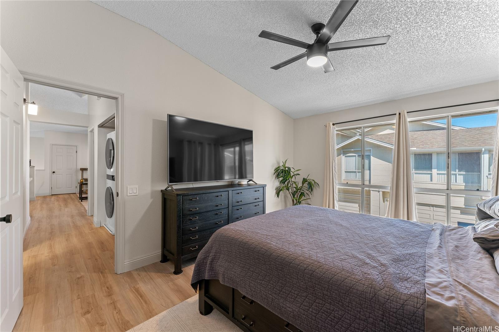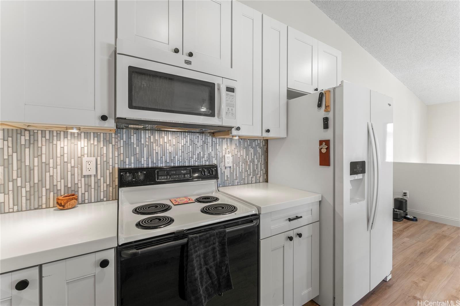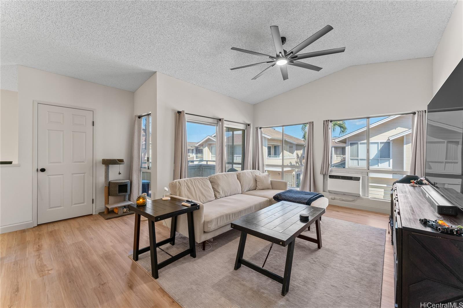 Welcome to this beautifully updated, move-in ready 2-bedroom, 2-bath townhouse in the gated Arbors community. Spanning over 1,000 sqft, this home features an open-concept layout with soaring high ceilings and abundant natural light. The modern interior boasts new waterproof vinyl flooring, fresh paint, updated lighting, hardware, and refreshed vanities. The kitchen and bathrooms have been stylishly revitalized, while new carpet lines the stairs. Stay cool with window AC units, ceiling fans, and tinted windows throughout. A standout feature of this property is the rare 2-car enclosed garage, providing secure parking and excellent additional storage. Relax on your private lanai or enjoy community amenities including a pool, BBQ area, and on-site management. Perfectly located near Ka Makana Ali‘i Mall, Safeway, and local dining, you’re also just minutes from White Plains Beach, Kapolei Commons, and major freeway access. This clean, safe, and welcoming home is an ideal find for buyers seeking the perfect balance of comfort, location, and value.