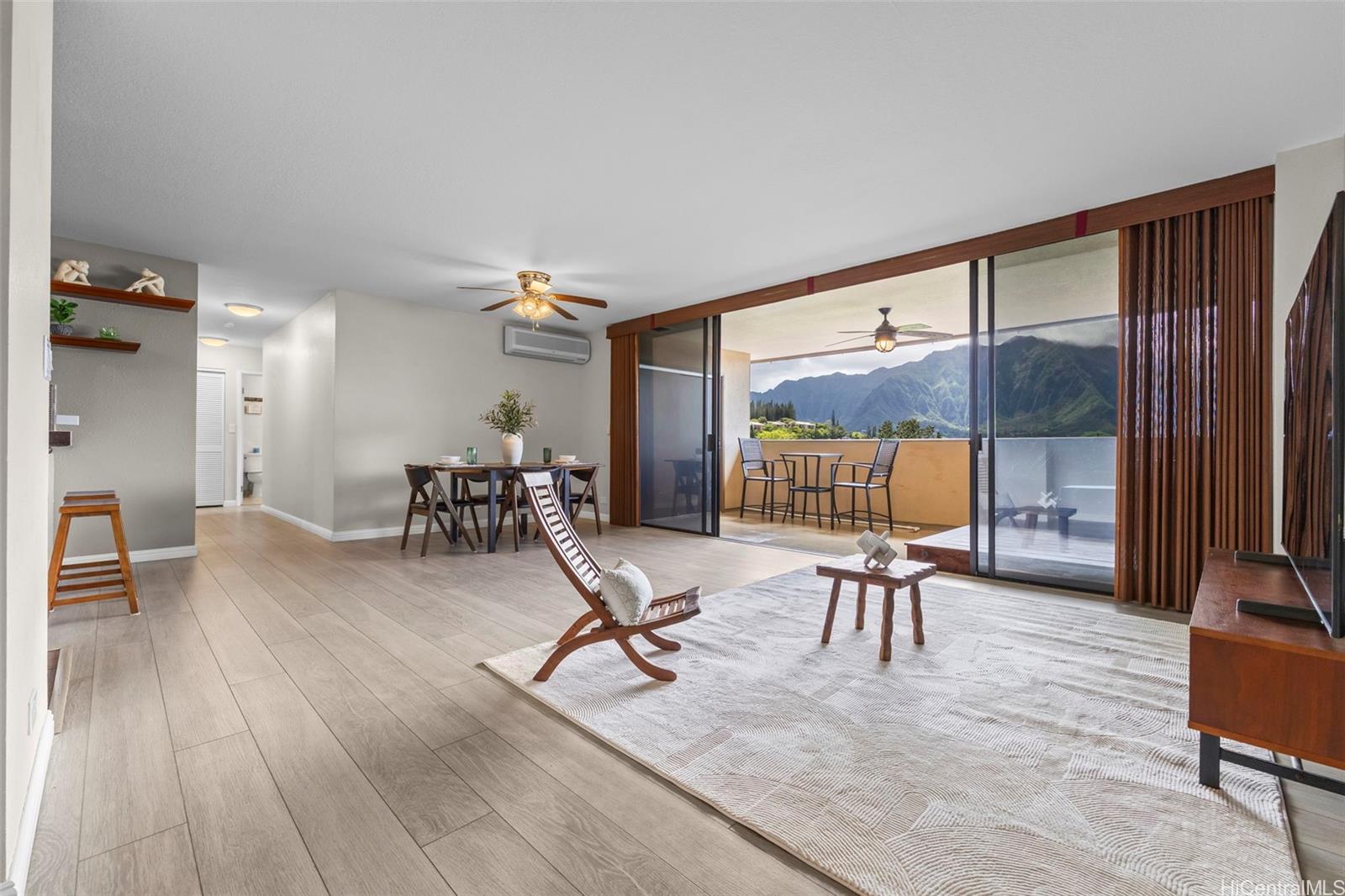 Wake up on the bay in this 3-bed, 2-bath, 2 parking townhome in Poha Kea Point, offering expansive, unobstructed views of Kaneohe Bay and the Ko‘olau mountains from the primary bedroom and lanai. This rare, single-level “Rosewood” model (the largest in the community) was designed with comfort, elegance, and modern functionality in mind. The open-concept layout flows to a covered lanai with a front-row seat to the bay’s ever-changing hues. Host sunset dinners on your lanai, where the Ko‘olau ridgeline becomes a living painting and the bay glows in ever-changing colors. Modern upgrades and split A/C complete this unit's charm.
