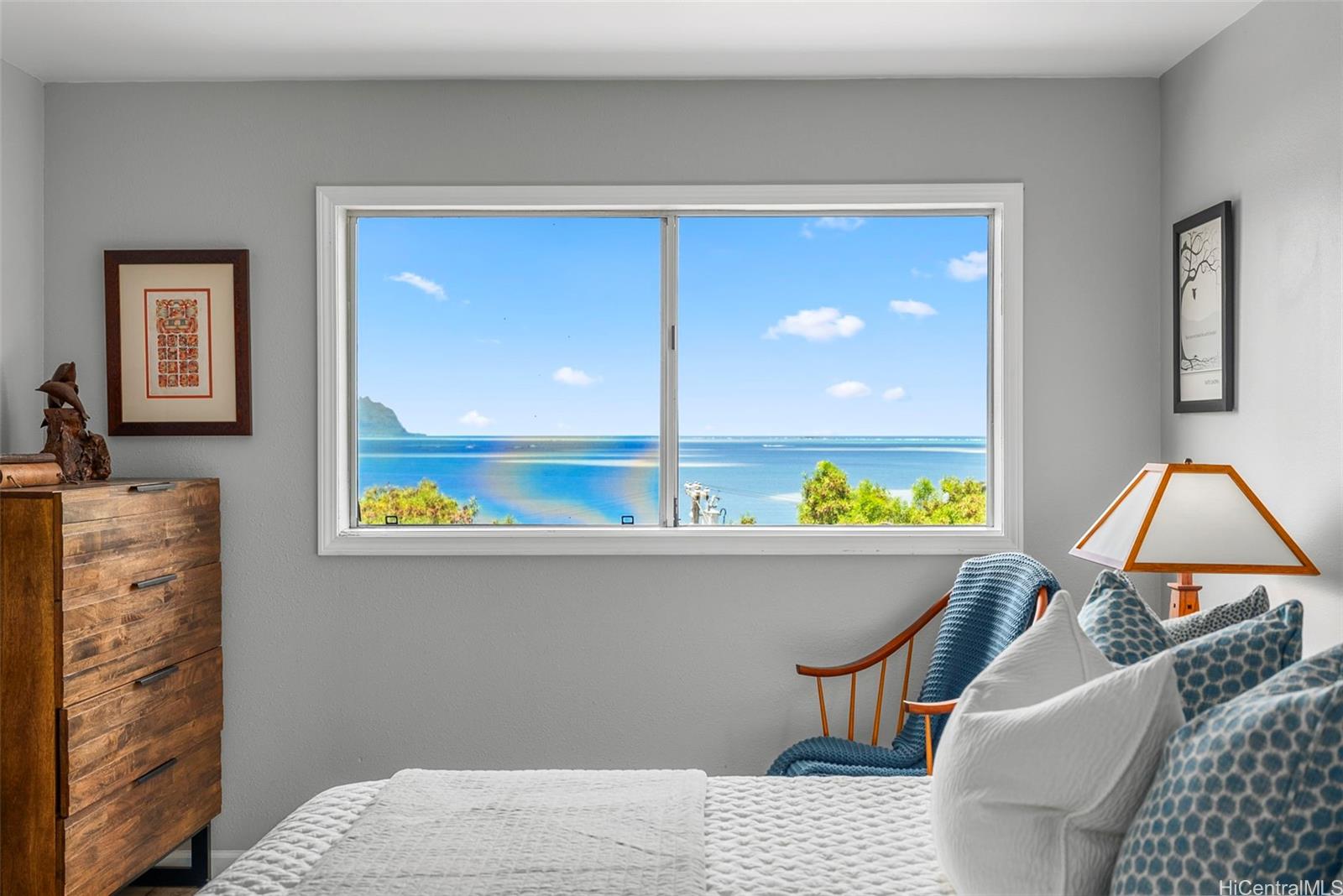 This beautifully renovated unit is offered at an excellent price! Perfect LOCATION! No unit above, & only 1 unit below. Located in the first building, super convenient to BBQ grill, pool and rec center facilities. This beautifully maintained 2bd, 2bth townhome offers expansive views of Kane‘ohe Bay—including the iconic sandbar dotted with boats that bring the scenery to life. Step inside to discover large windows that flood the space with natural light & frame those breathtaking views. Enjoy your morning coffee or evening pau hana on the covered lanai, soaking in the serenity. This spacious unit features updated kitchen, bathrooms, flooring, fixtures and finishes. A custom "Inspired Closets" Murphy bed offers flexibility, for guests or home office. The unit includes two parking spaces (one covered & one shaded) & is pet friendly. Community amenities include a resort-style pool, sauna, clubhouse, tennis/pickleball courts, BBQ area, lush landscaping, 24/7 security, & guest parking. Easy access to H-3/Likelike Hwy, minutes from Windward Mall, local shops, restaurants, & the popular Kane‘ohe Farmers Market on weekends.