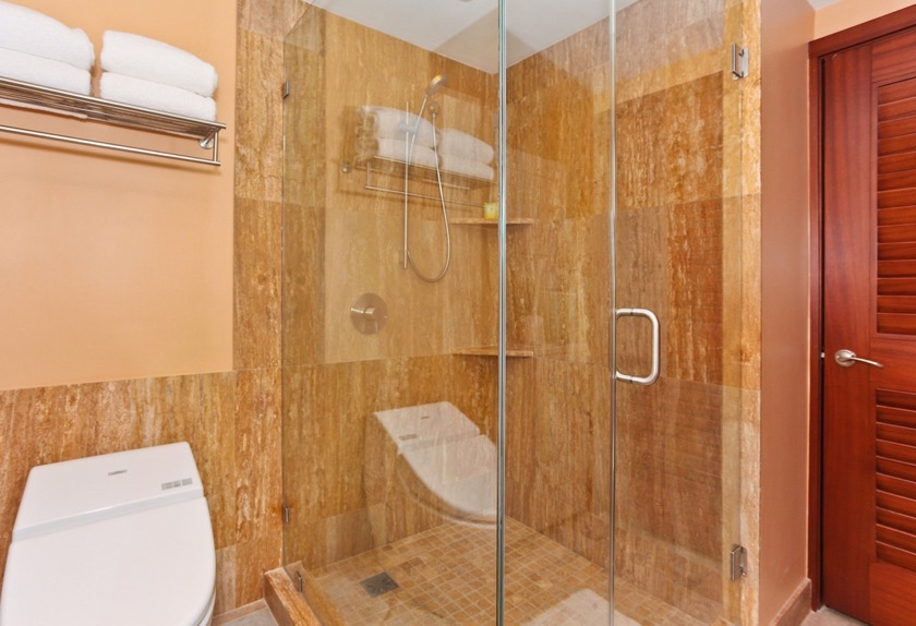 マスター・ベッドルームには、キングサイズのベッド、ベッドルームとリビングルームを仕切るポケットドアーもアフリカのマホガニー材使用。マスター・バスルームの床材は美しいトラバティーンの石。ウォシュレット付き。バスタブとシャワー。二つ目のベッドルームには、ツインのベッドが二つ。40インチのテレビ。バスルームは同じ肌触りの良いトラバティーンの石。タブとシャワー。ウォシュレット付き。無料WIFIインターネット。洗濯機/乾燥機付き。近くの駐車場の一台分の駐車券込み。プールは有りません。